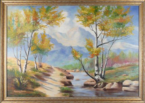 Raymond Hawes Oil on Board Landscape Signed lower right '49 30" x 42"