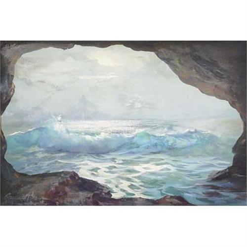 8163 Raymond Page (1885-1958) Oil on Board "Cave La Jolla, Calif" Signed lower left 8" x 11 1/2"