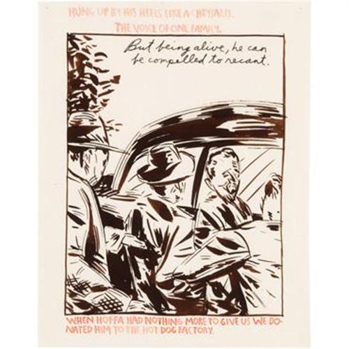 Raymond Pettibon b. 1957<BR>untitled (Hoffa)<BR>1990<BR>ink on paper<BR>11 h x 8.5 w inches<BR>Signed and dated to verso 'Raymond Pettibon 90'<BR><BR>Condition of the item is not included in this description. Condition reports are available from Wright upon request. Wright strongly recommends that you review a condition report for each item on which you plan to bid.