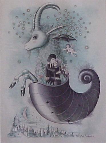 THE DREAM, color aquatint etching, signed in pencil, from the numbered edition 69, image 20 x 14 ¾”, full margins, framed with glass. $400/500