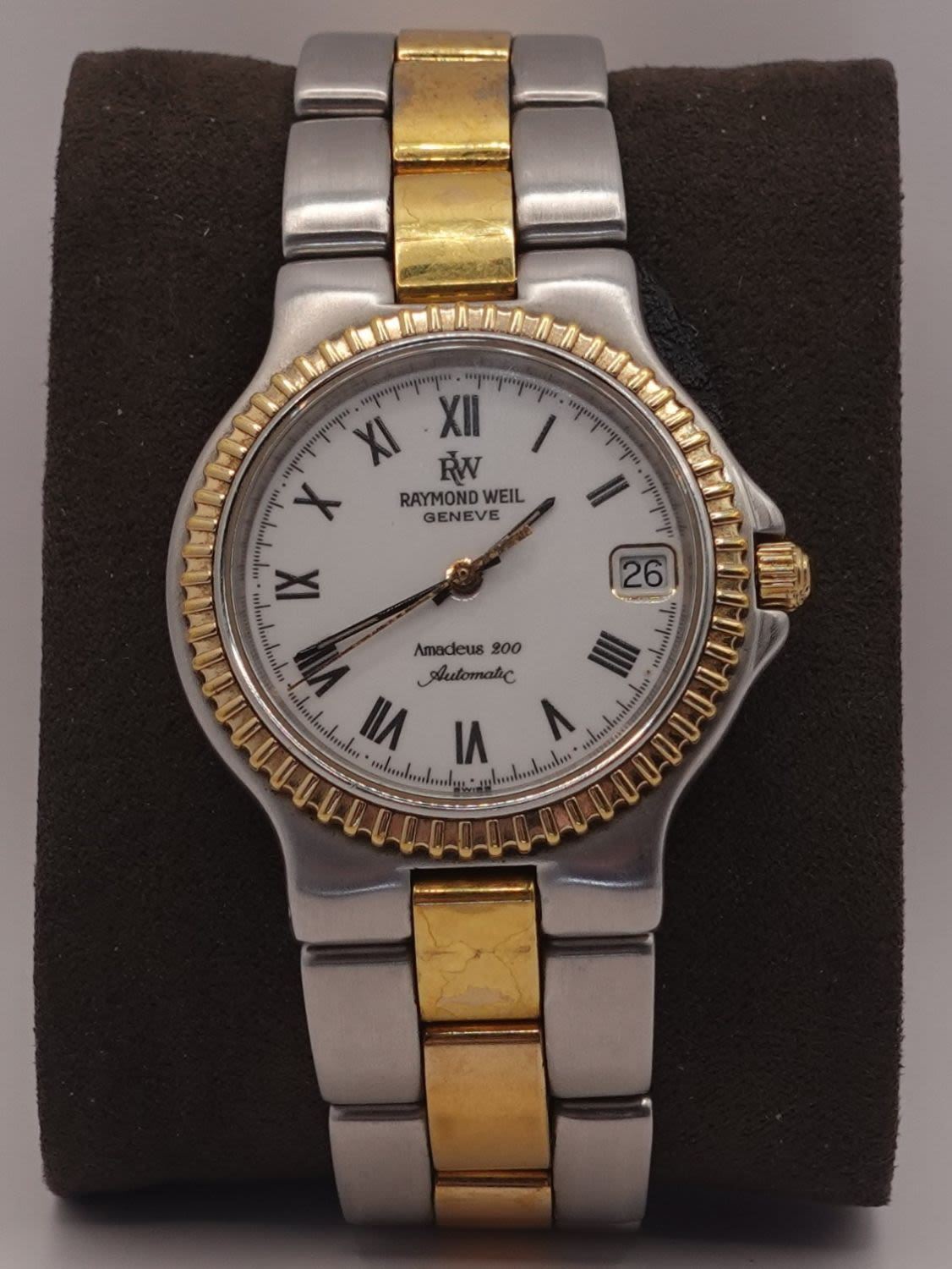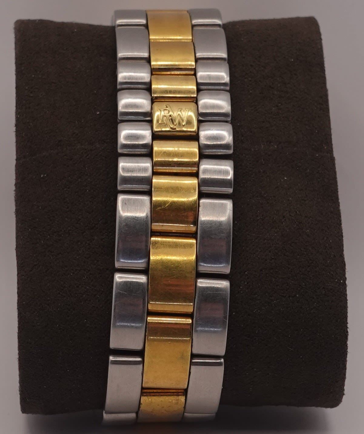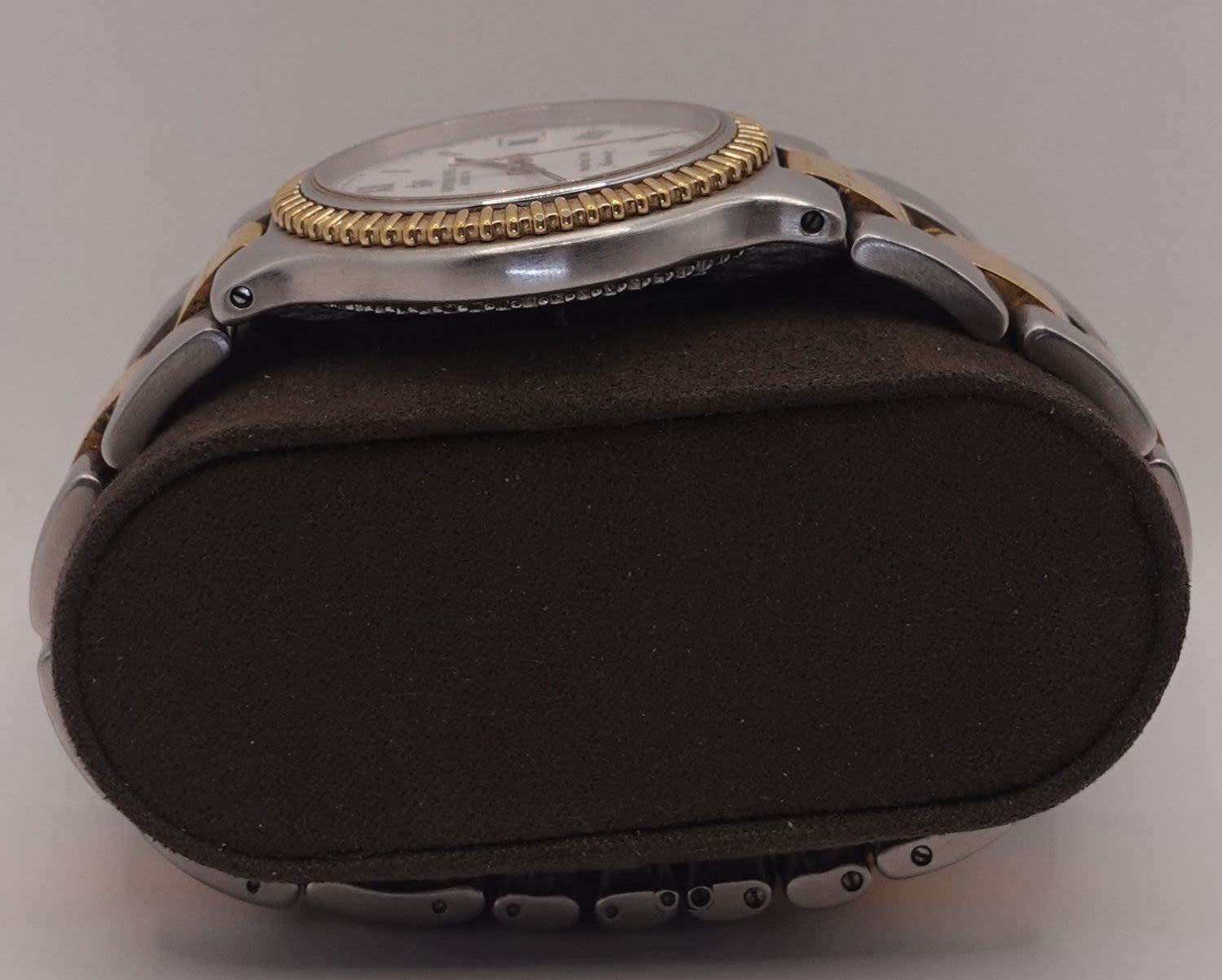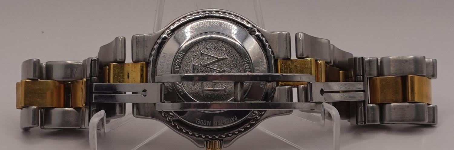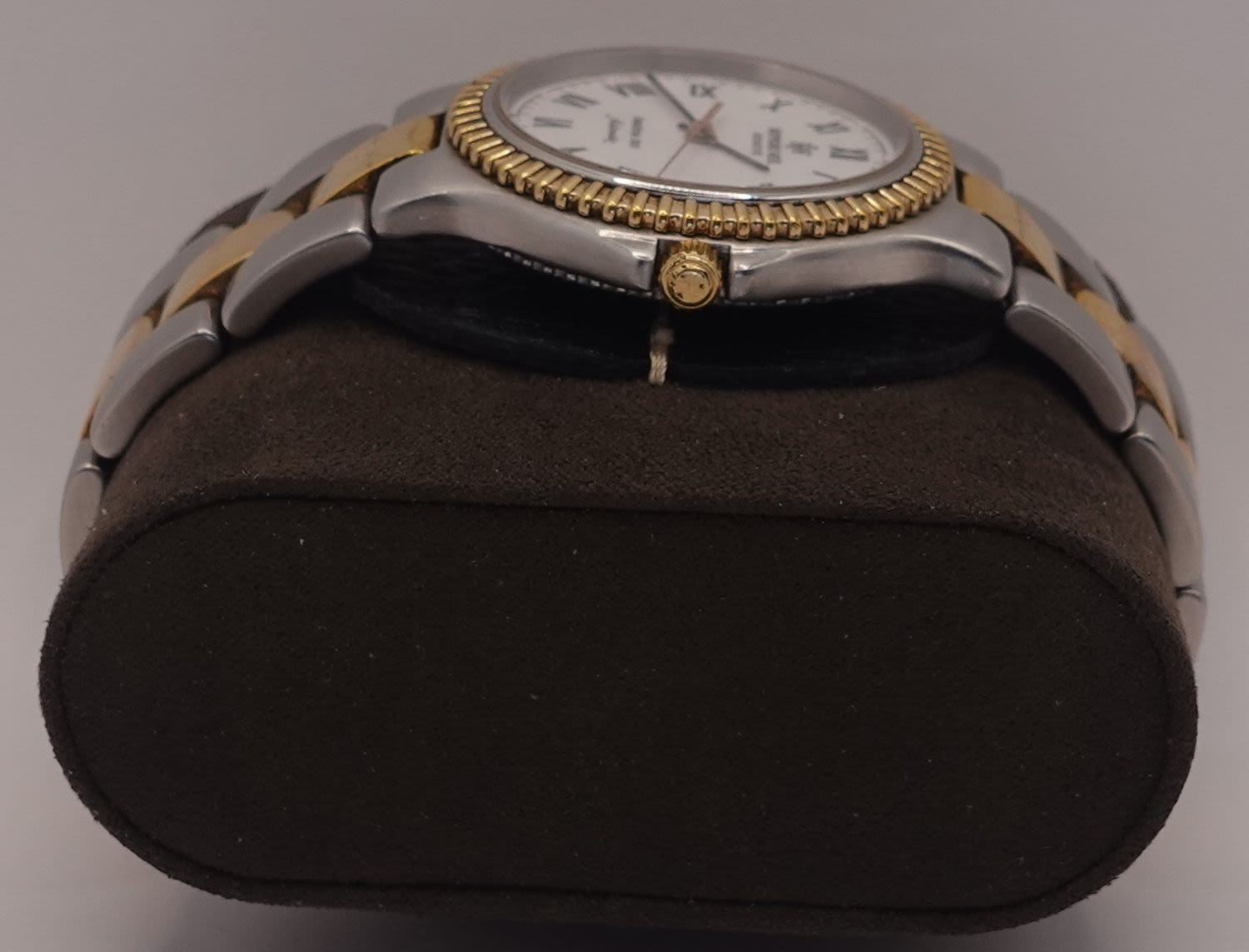 Stainless and 18k GP bezel and bracelet. Swiss made, Ivory colored dial. Water resistance: 100 meters (10 ATM). Running working condition. This is a very Nice Watch!