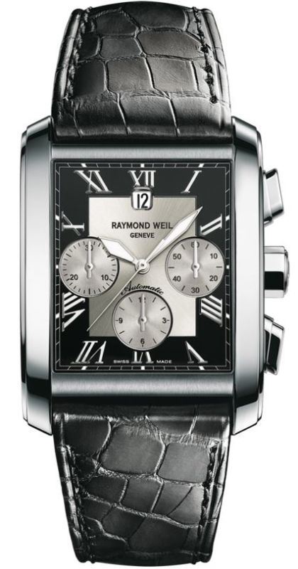 Model: 4878-STC-00268 - CASE = [Material:Stainless Steel], [Case Diameter:37], [Bezel:Fixed], [Case Back:Solid], [Water Resistant:30 Meters - 100 Feet], [Crystal:Scratch Resistant Sapphire], DIAL = [Color:Black and Silver], MOVEMENT = [Type:Automatic Chronograph], [Crown:Push In], BAND = [Clasp:Folding], [Type:Black Leather], (In Stock - Ready to ship.)