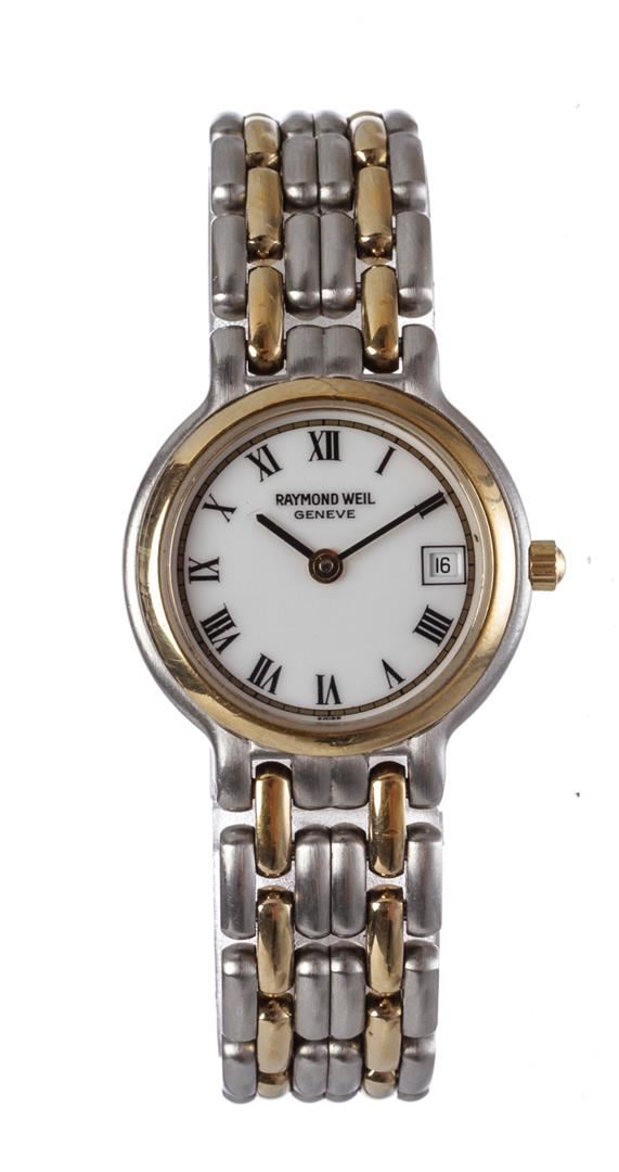 One Raymond Weil Geneve Quartz Stainless Steel Wristwatch. Raymond Weil Geneve mmxmm Quartz Wristwatch Stainless Steel and Gold plated watch.