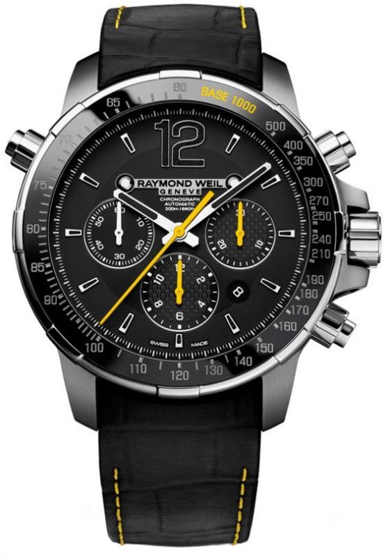 Model: 7850-TIR-05207 - CASE = [Material:Stainless Steel], [Case Diameter:46], [Case Thickness:15.25mm], [Bezel:Fixed], [Case Back:Solid], [Water Resistant:200 Meters - 660 Feet], [Crystal:Scratch Resistant Sapphire], DIAL = [Color:Black], MOVEMENT = [Type:Automatic Chronograph], [Crown:Push In], BAND = [Clasp:Deployment], [Type:Black Leather], (Usually ships in 1 to 2 business days.)