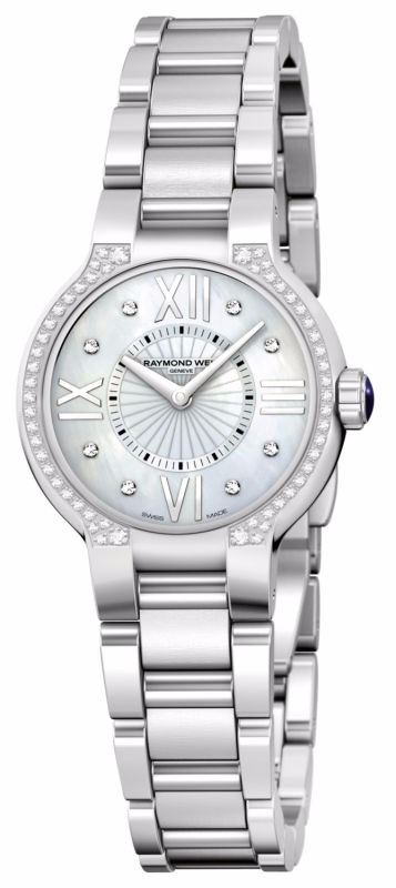 Model: 5927-STS-00995 - CASE = [Material:Polished Stainless Steel], [Case Diameter:27], [Case Thickness:5.85mm], [Bezel:Set with 54 Diamonds], [Water Resistant:50 Meters / 165 Feet], [Crystal:Scratch Resistant Sapphire],; DIAL = [Color:White Mother of Pearl With Roman Numeral and Diamond Hour Markers],; MOVEMENT = [Type:Battery Powered Quartz], [Crown:With Black Lacquer],; BAND = [Clasp:Double Push Button Deployment], [Type:Brushed and Polished Stainless Steel], (Usually ships in 1 to 2 business days.)