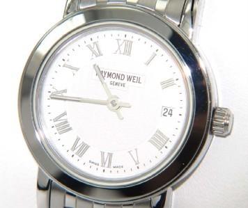 Raymond Weil Stainless Steel DateJust Watch . The total watch's weight is 55.8 grams. The measurements of watch head is 24 x 24 mm and 4 mm thick. The length of watch: 6". Water Resistant. swiss made. Chain is 17 mm wide.