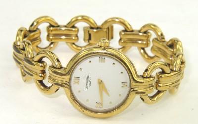 Raymond Weil Stainless Steel Watch . The total watch's weight is 32.7 grams. The measurements of watch head is 21 x 21 mm and 4 mm thick. The length of watch: 6". water Resistant. swiss made. Chain is 13 mm wide.