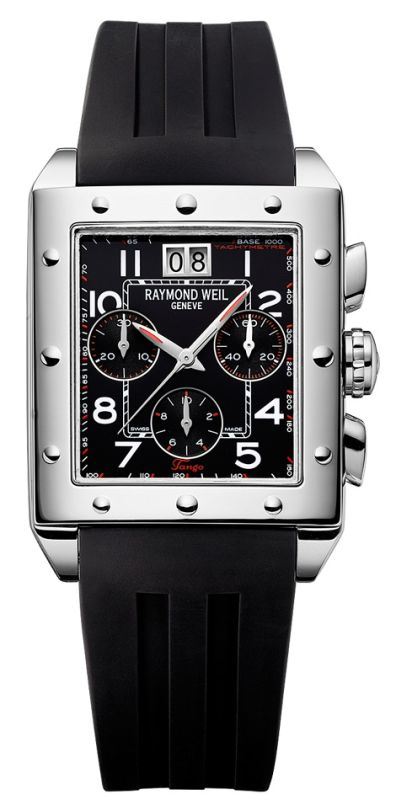 Model: 48811-SR-05200 - CASE = [Material:Polished Stainless Steel], [Case Diameter:36.2], [Bezel:Fixed], [Case Back:Solid], [Water Resistant:50 Meters / 165 Feet], [Crystal:Scratch Resistant Sapphire], DIAL = [Color:Black Chronograph with Date Date at 12], MOVEMENT = [Type:Battery Powered Quartz], BAND = [Clasp:Secured Double Push Button Folding], [Type:Black Rubber], (Usually ships in 1 to 2 business days.)