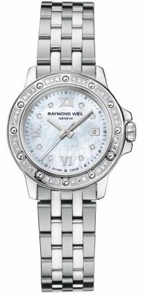 Model: 5399-STS-00995 - CASE = [Material:Stainless Steel], [Case Diameter:28.5], [Case Thickness:6.75mm], [Bezel:Fixed, Set with 36 Diamonds], [Case Back:Solid], [Water Resistant:50 Meters - 165 Feet], [Crystal:Scratch Resistant Sapphire],; DIAL = [Color:Mother Of Pearl Diamond, Date at 3],; MOVEMENT = [Type:Battery Powered Quartz],; BAND = [Clasp:Deployment], [Type:Stainless Steel], (Usually ships in 1 to 2 business days.)