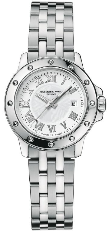 Model: 5399-ST-00308 - CASE = [Material:Polished with Brushed Stainless Steel], [Case Diameter:28], [Case Thickness:6.75mm], [Bezel:Fixed], [Case Back:Solid], [Water Resistant:50 Meters / 165 Feet], [Crystal:Scratch Resistant Sapphire], DIAL = [Color:White with Date at 3], MOVEMENT = [Type:Battery Powered Quartz], BAND = [Clasp:Hidden Folding], [Type:Brushed and Poished Stainless Steel], (Usually ships in 1 to 2 business days.)