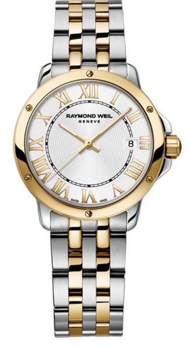 Model: 5391-STP-00308 - CASE = [Material:Stainless Steel], [Case Diameter:28], [Case Thickness:6.6], [Bezel:Fixed], [Case Back:Solid], [Water Resistant:100 Meters - 330 Feet], [Crystal:Scratch Resistant Sapphire], DIAL = [Color:White], MOVEMENT = [Type:Quartz], [Crown:Push In], BAND = [Clasp:Folding], [Type:Two-Tone Stainless Steel], (Usually ships in 1 to 2 weeks.)