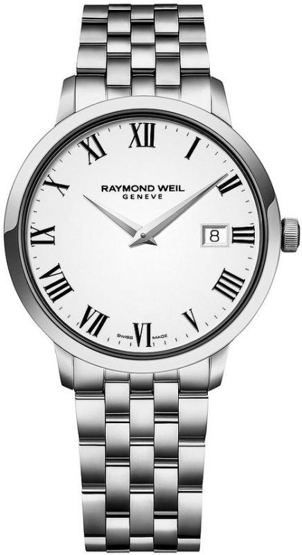 Model: 5588-ST-00300 - CASE = [Material:Stainless Steel], [Case Diameter:42], [Case Thickness:7.82mm], [Bezel:Fixed], [Case Back:Solid], [Water Resistant:50 Meters - 165 Feet], [Crystal:Scratch Resistant Sapphire], DIAL = [Color:White with Black Roman Numerals], MOVEMENT = [Type:Quartz], [Crown:Push In], BAND = [Clasp:Folding], [Type:Stainless Steel], (Usually ships in 1 to 2 weeks.)