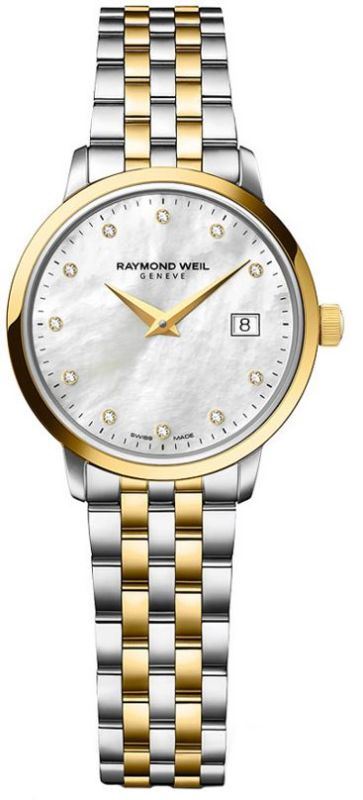 Model: 5988-STP-97081 - CASE = [Material:Stainless Steel and Plated Yellow Gold], [Case Diameter:29], [Case Thickness:6.79mm], [Bezel:Fixed], [Case Back:Solid], [Water Resistant:50 Meters - 165 Feet], [Crystal:Scratch Resistant Sapphire], DIAL = [Color:Mother of Pearl], MOVEMENT = [Type:Quartz], [Crown:Push In], BAND = [Clasp:Folding], [Type:Two-Tone Stainless Steel], (Usually ships in 1 to 2 weeks.)