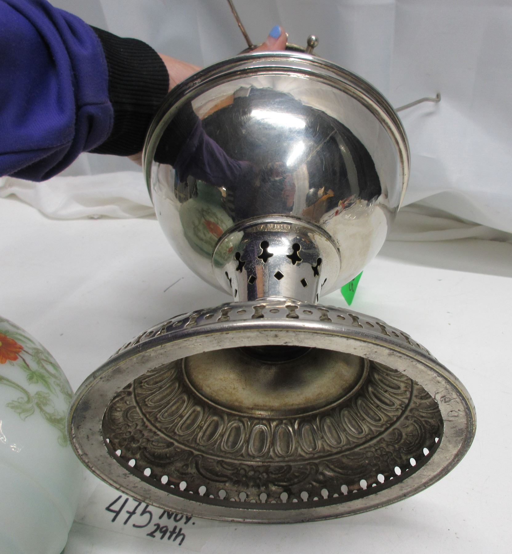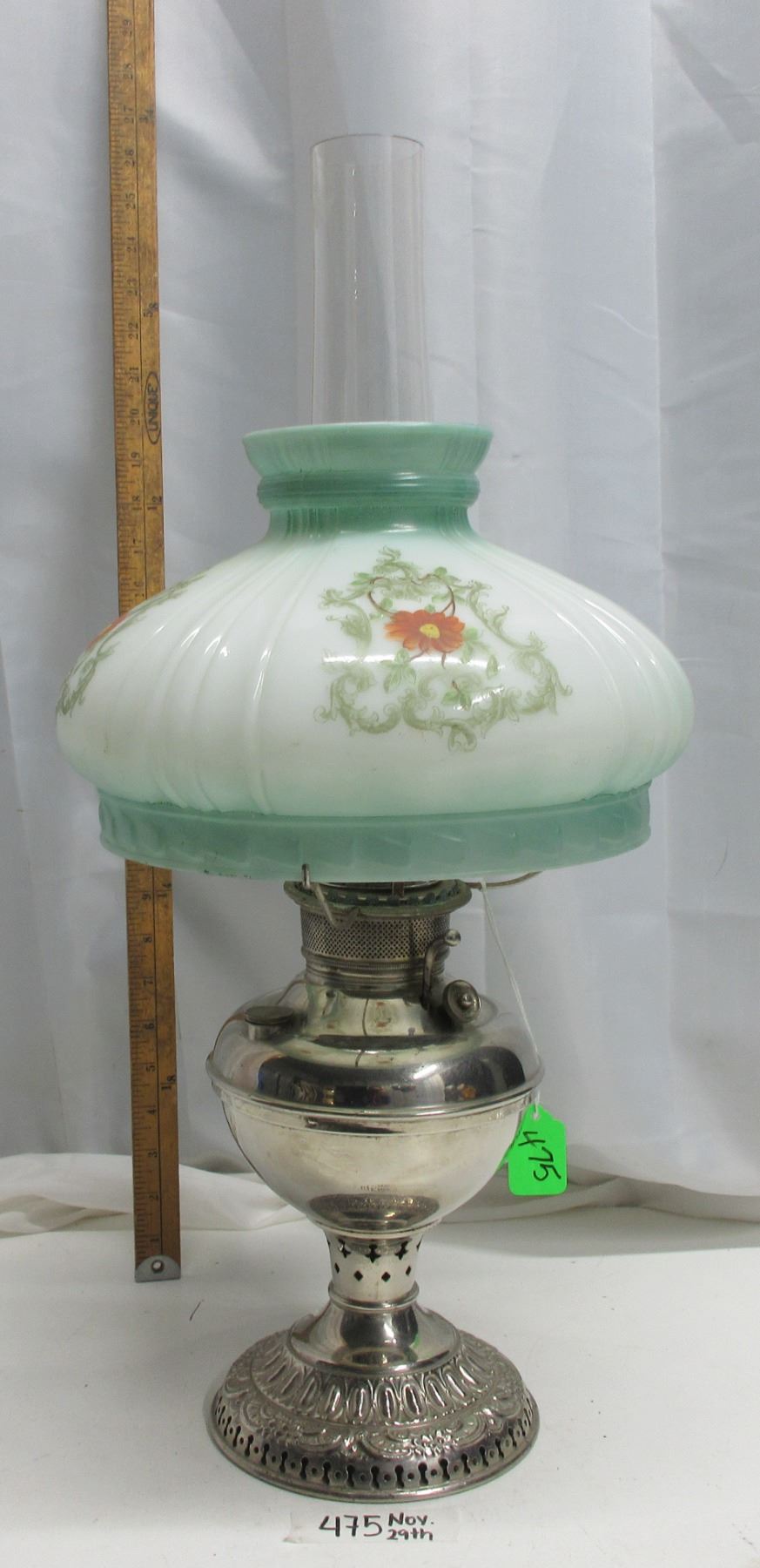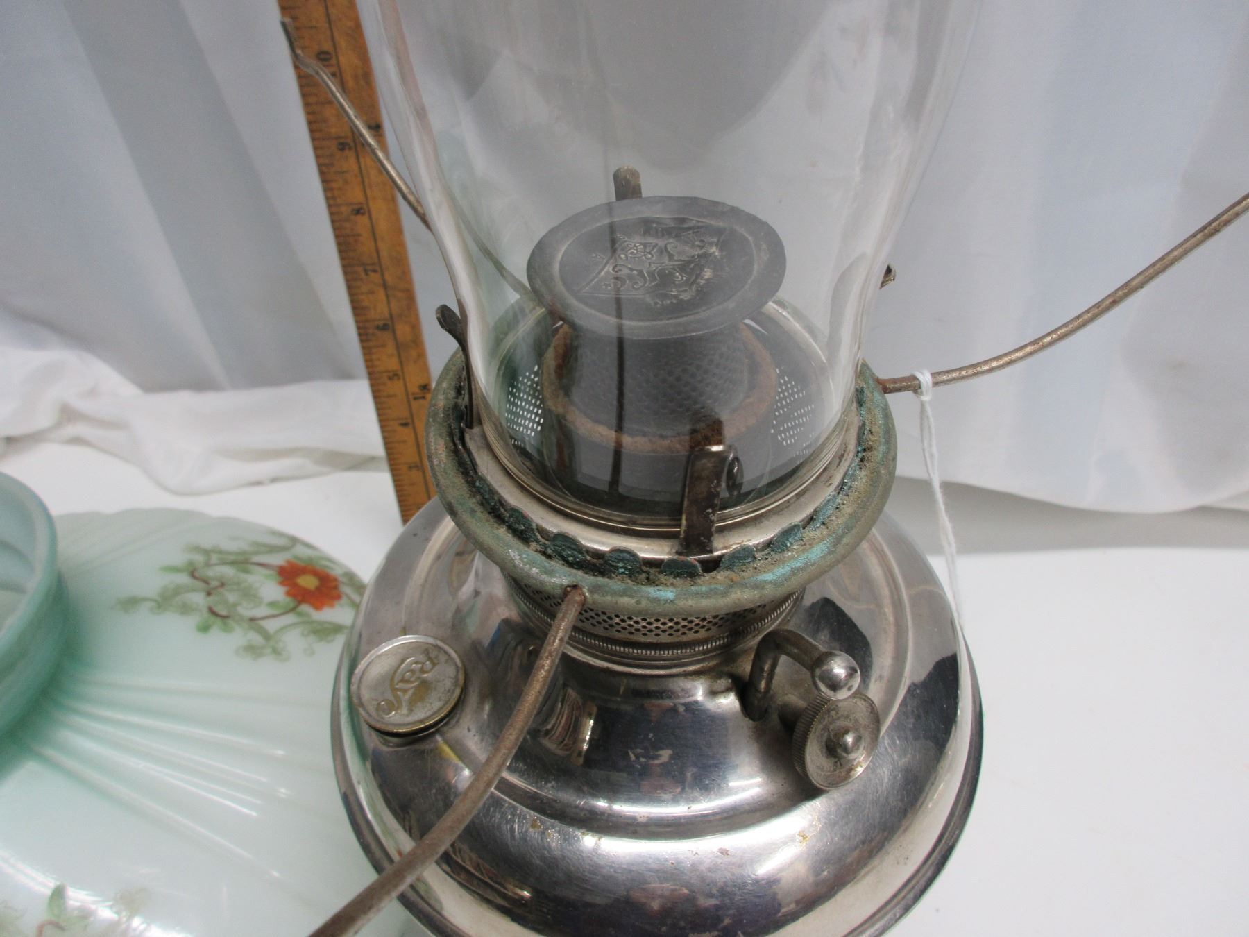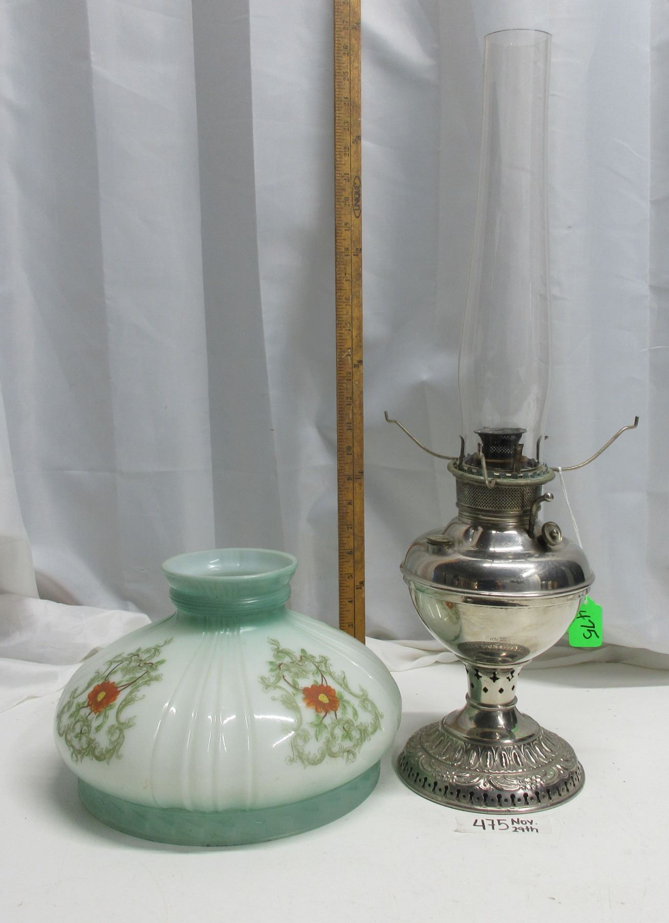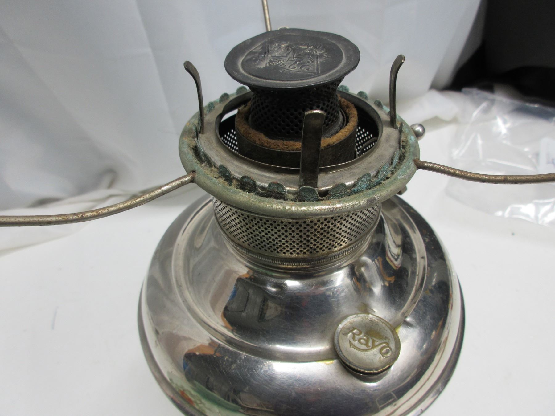 Rayo Nickel plated cial oil lamp with nice original shade and Globe