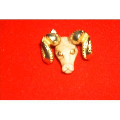 This is a "Rams" Head, signed "Razza". Gold plated horns and eyes. IThe head itself apears to be bakelite, but to be truthfully, I'm not really sure. This little fellow measures: 1 inch long by 3/4 inch wide The face and mouth are beautifully detailed. MINT CONDITION.