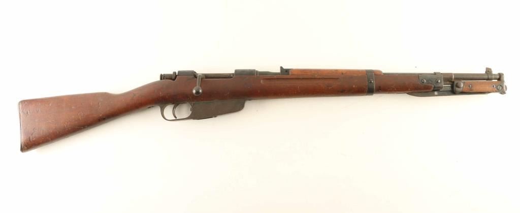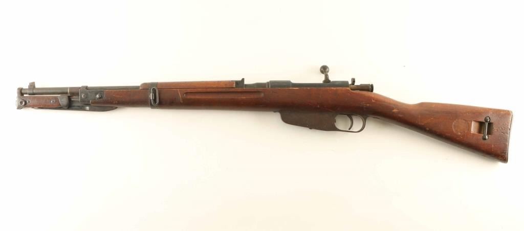 Rifle. Bolt-Action. Italian Carcano military issued rifle, circa WW2. 21.5" barrel with open iron sights. Fed from 6-rd integral box magazine. Stock serial number matched to rifle. Barrel dated 1939, and Terni 1939 dated stock cartouche. Crown on receiver ring, also marked "SA" in box. Indicates use by Finland at some point. Bore is rough/dark. Action is a little stiff. Wood has scratches/dings. Blued finish Is dull with surface rust throughout. Dried cosmoline in barrel, chamber, and magazine. Needs a good cleaning. Attached is a serial numbered Italian folding Carcano Bayonet (Rare) NRA condition-Good. C&R Firearm.