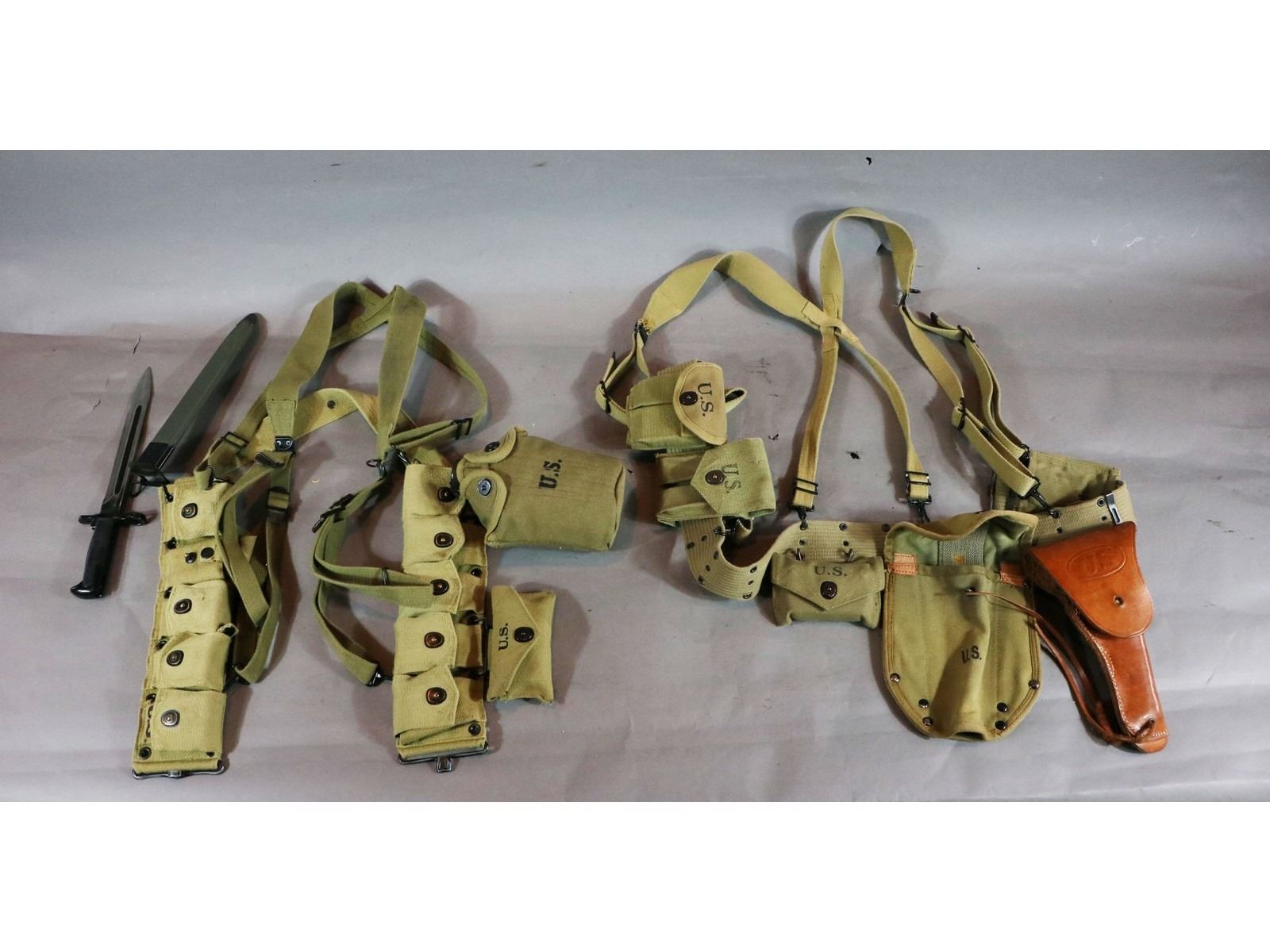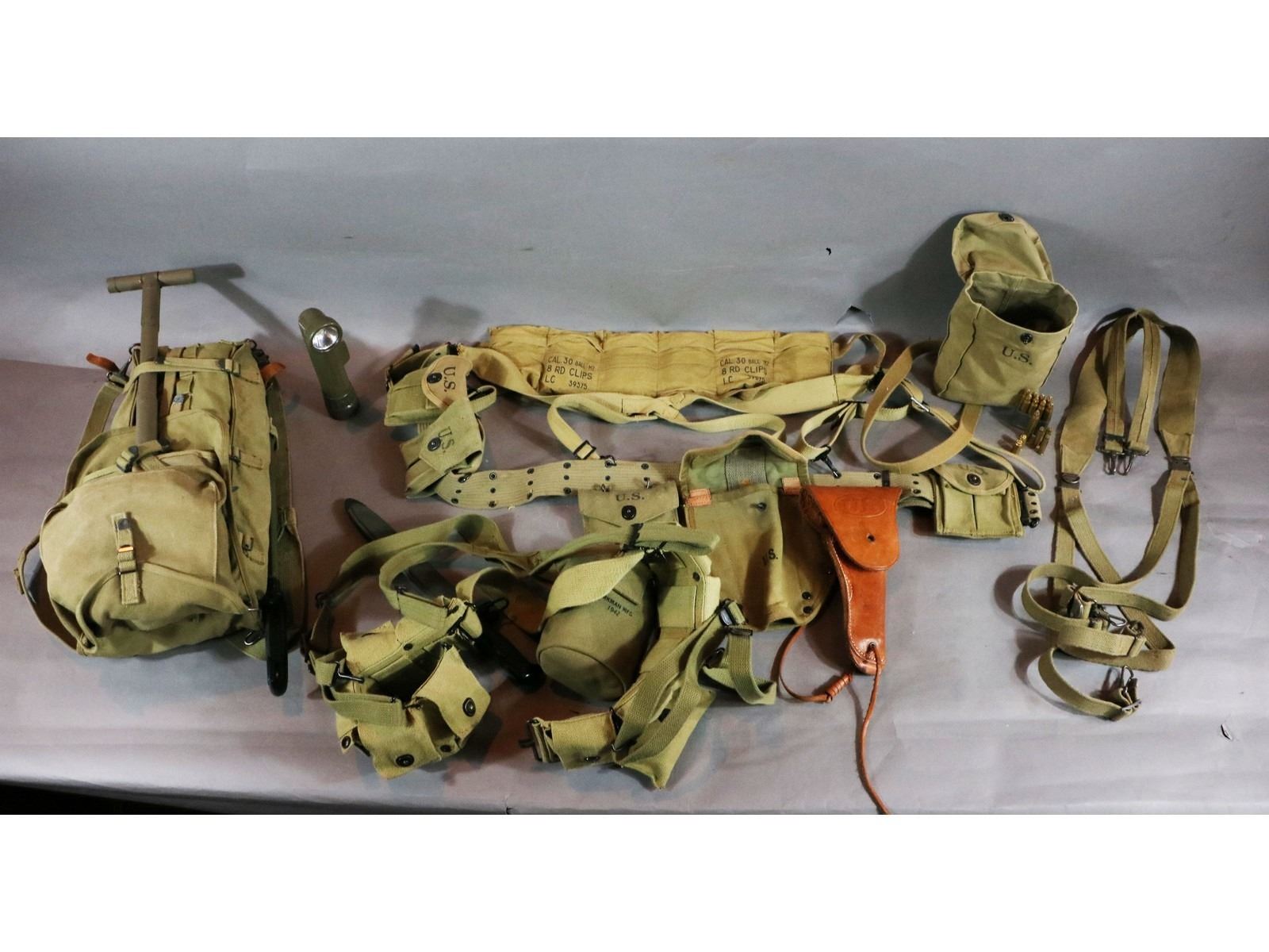 Mix of repro & original WWII US field gear. See photos. Everything you need to start reenacting. Includes some blank ammo.