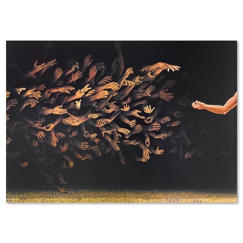 "Reach" is a limited edition giclee on stretched canvas by Vernon Finney, numbered 7/295 and hand signed by the artist. Includes Letter of Authenticity. Measures approx. 14" x 20" (image). There is a small divot crease on the bottom-left part of the image