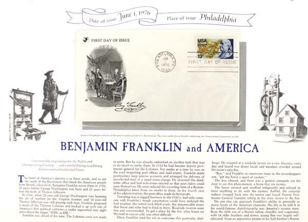 Reader's Digest First Day Cover Collection, comes with COA, registration number A 112343, album measures 12'' x 14.5'', includes: 1. Benjamin Franklin and America, date of issue June 1, 1976, Philadelphia 2. The Road to Independence, date of issue July 4, 1976, Philadelphia 3. The Charter of Liberty, date of issue July 4, 1976, Philadelphia 4. Days of Decision, date of issue July 4, 1976, Philadelphia 5. Spreading the News, date of issue July 4, 1976, Philadelphia 6. The Olympic Games Begin, date of issue July 16, 1976, Lake Placid, New York 7. The Olympics, date of issue July 16, 1976, Lake Placid, New York 8. The Olympic Winter Games, date of issue July 16, 1976, Lake Placid, New York 9. The Spirit of the Olympics: 1976, July 16, 1976, Lake Placid, New York 10. Heroine in the War Against Yellow Fever, date of issue August 18, 1976, Belleville, New Jersey 11. All the News That's Fit to Print, date of issue September 18, 1976, New York, New York 12. The Great Nuclear Furnace, date of issue May 21, 1981, Kennedy Space Center, Fla. 13. Visions of the Universe, date of issue May 21, 1981, Kennedy Space Center, Fla. 14. Vanderers in a Starlit Sky, date of issue May 21, 1981, Kennedy Space Center, Fla. 15. Unraveling Lunar Riddles, date of issue May 21, 1981, Kennedy Space Center, Fla. 16. The 20th Century Tries New Solutions to an Age-Old Problem, date of issue August 19, 1981, Washington, D.C.