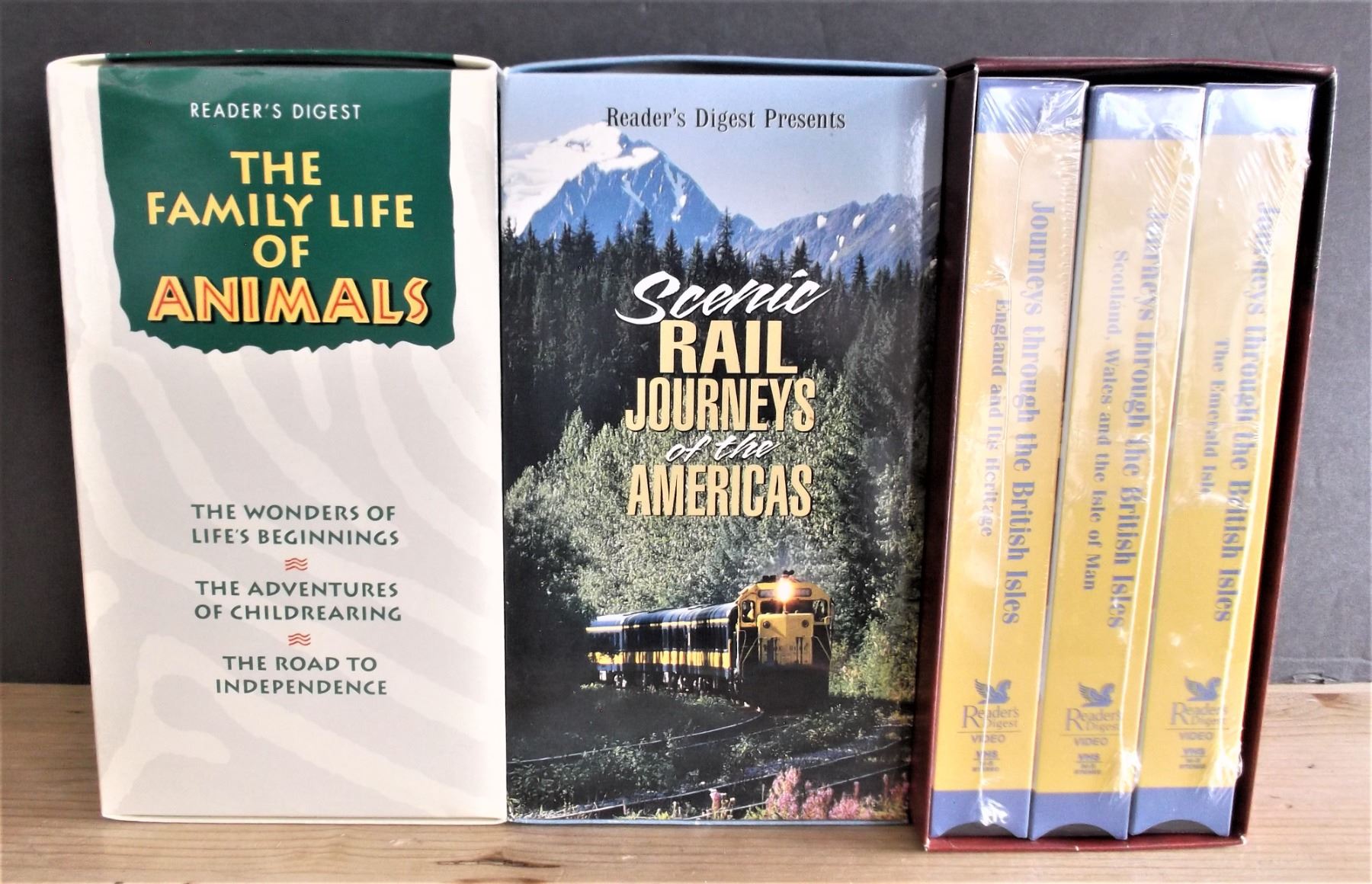 Readers Digest VHS Collections: The Family Life of Animals, Scenic Rail Journeys, and British Isles