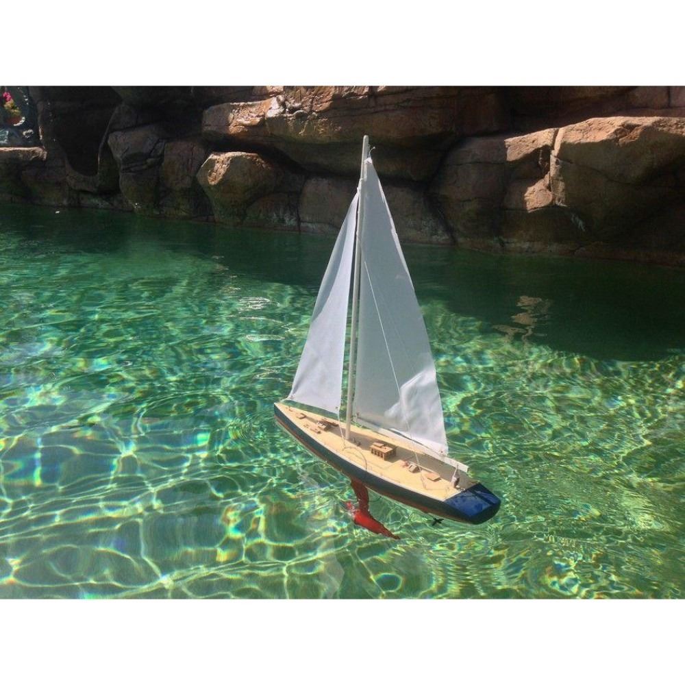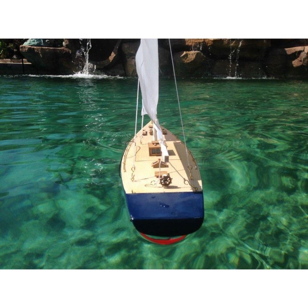 Ready To Run Remote Control Endeavour 30" Limited NOT A MODEL SHIP KIT Simply Attach Sails and Charge Battery and this RC Sailboat is Ready To Use In The Water This Ready To Run Remote Control Endeavour 30" Limited sailboat is sleek, graceful and agile. Modeled after the legendary America's Cup racing yacht that made its debut in 1934, the Endeavour 30" model is an absolute beauty out on water. Buy this RC boat as a gift for the sailboat aficionado in your life, or use it at the lake and enjoy hours of outdoor entertainment! Dimensions: 20" L x 4.5" W x 30" H Fully functional remote control sailing boat with dual motors and propellers High quality remote control range - Up to 150 feet! High quality woods used in construction of hull and deck features 3 frequencies available - Run up to 3 of our models at the same time! Reaches speeds of up to 10 miles per hour! Rechargeable battery and adapter included Museum quality RC sailboat - display on top of mantle or take out on the water Wooden stand displays the Endeavour nameplate prominently Recommended for ages 14 & up Batteries not included
