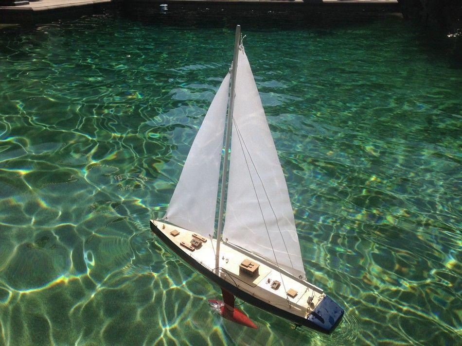 Ready To Run Remote Control Endeavour 30" Limited NOT A MODEL SHIP KIT Simply Attach Sails and Charge Battery and this RC Sailboat is Ready To Use In The Water This Ready To Run Remote Control Endeavour 30" Limited sailboat is sleek, graceful and agile. Modeled after the legendary America's Cup racing yacht that made its debut in 1934, the Endeavour 30" model is an absolute beauty out on water. Buy this RC boat as a gift for the sailboat aficionado in your life, or use it at the lake and enjoy hours of outdoor entertainment! Dimensions: 20" L x 4.5" W x 30" H Fully functional remote control sailing boat with dual motors and propellers High quality remote control range - Up to 150 feet! High quality woods used in construction of hull and deck features 3 frequencies available - Run up to 3 of our models at the same time! Reaches speeds of up to 10 miles per hour! Rechargeable battery and adapter included Museum quality RC sailboat - display on top of mantle or take out on the water Wooden stand displays the Endeavour nameplate prominently Recommended for ages 14 & up Batteries not included