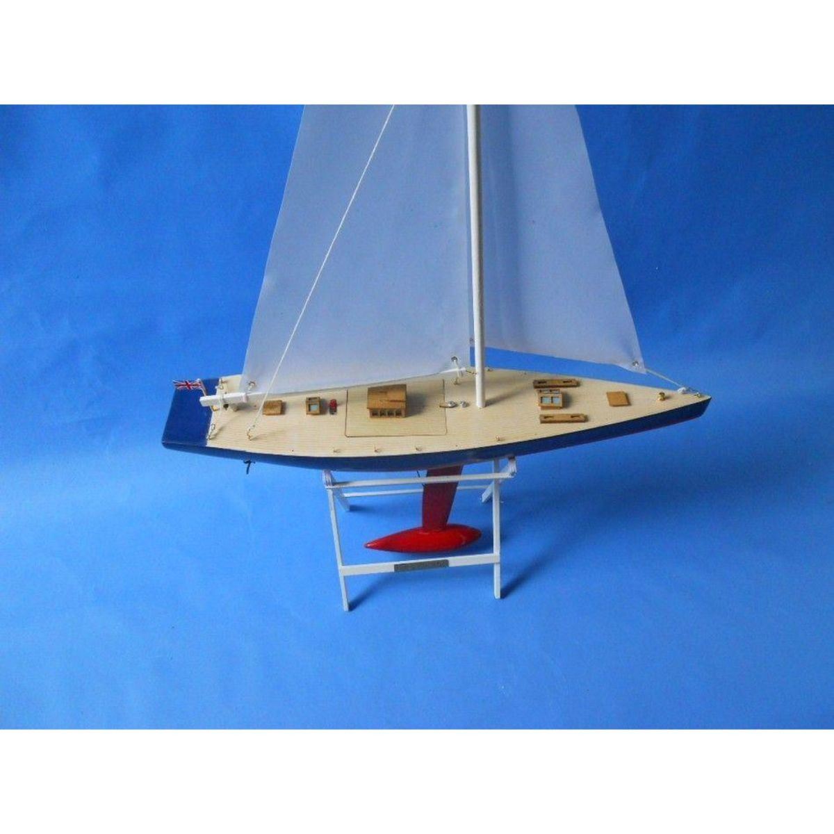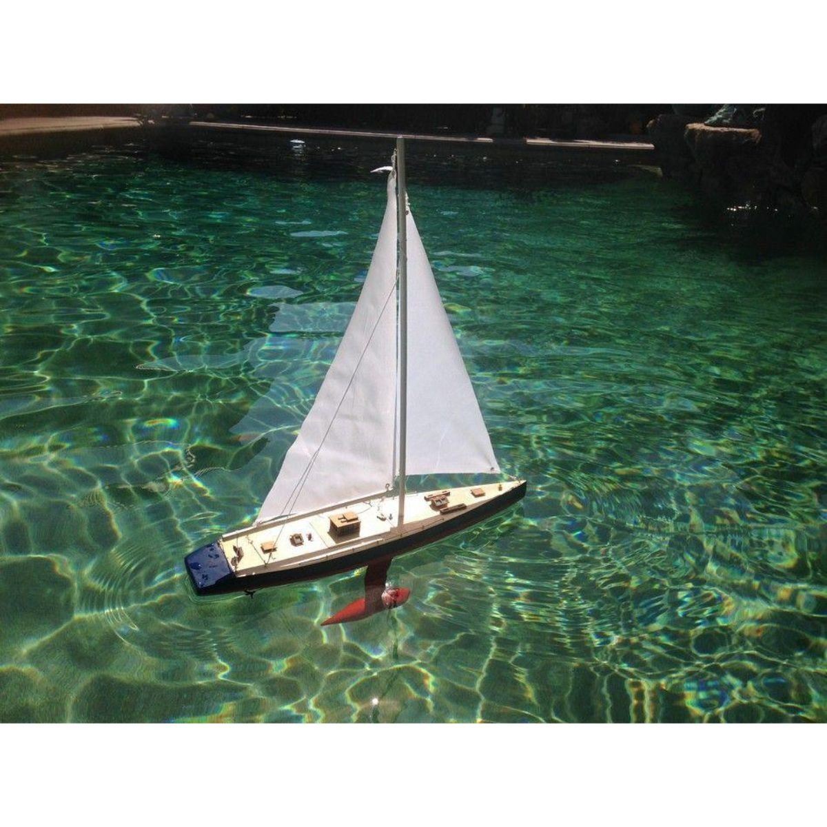 Ready To Run Remote Control Endeavour 30" Limited NOT A MODEL SHIP KIT Simply Attach Sails and Charge Battery and this RC Sailboat is Ready To Use In The Water This Ready To Run Remote Control Endeavour 30" Limited sailboat is sleek, graceful and agile. Modeled after the legendary America's Cup racing yacht that made its debut in 1934, the Endeavour 30" model is an absolute beauty out on water. Buy this RC boat as a gift for the sailboat aficionado in your life, or use it at the lake and enjoy hours of outdoor entertainment! Dimensions: 20" L x 4.5" W x 30" H Fully functional remote control sailing boat with dual motors and propellers High quality remote control range - Up to 150 feet! High quality woods used in construction of hull and deck features 3 frequencies available - Run up to 3 of our models at the same time! Reaches speeds of up to 10 miles per hour! Rechargeable battery and adapter included Museum quality RC sailboat - display on top of mantle or take out on the water Wooden stand displays the Endeavour nameplate prominently Recommended for ages 14 & up Batteries not included