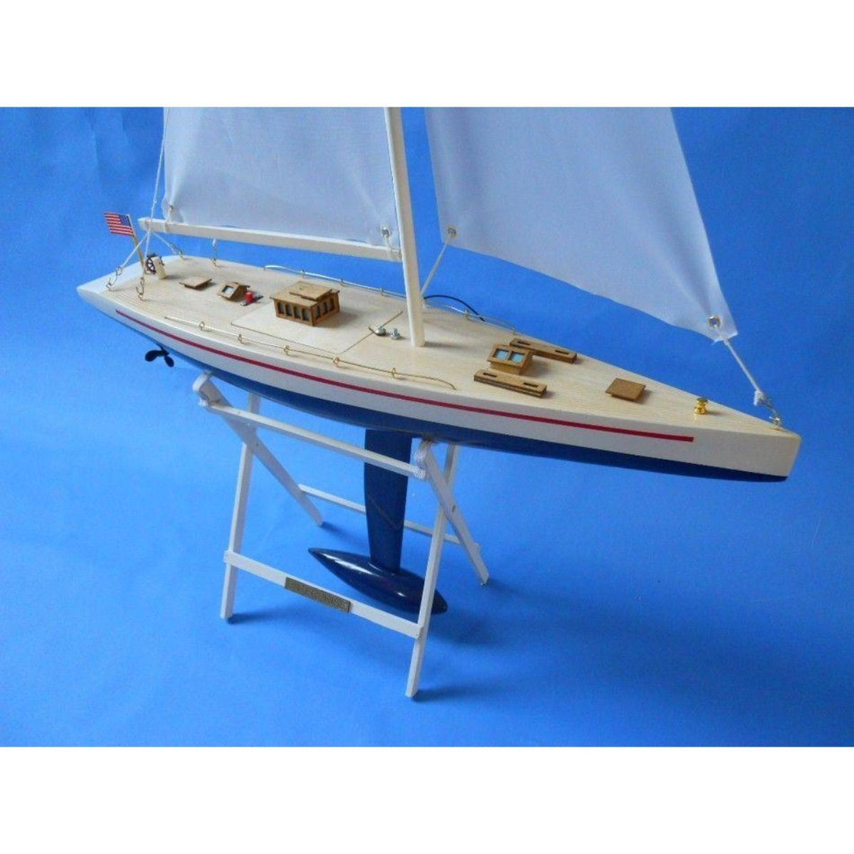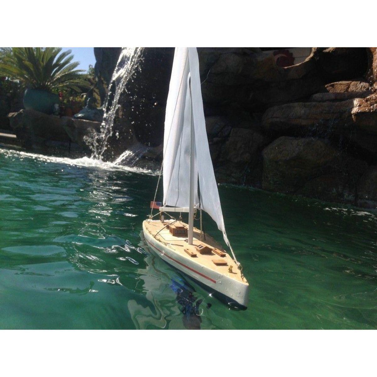Ready To Run Remote Control Enterprise 30" Limited NOT A MODEL SHIP KIT Simply Attach Sails and Charge Battery and this RC Sailboat is Ready To Use In The Water This Ready To Run Remote Control Enterprise 30" Limited sailboat is sleek, graceful and agile. Modeled after the smallest J-Yacht to compete in the America's Cup race which made its debut in the 1930's, the Enterprise 30" model is an absolute beauty out on water. Buy this RC boat as a gift for the sailboat aficionado in your life, or use it at the lake and enjoy hours of outdoor entertainment! Dimensions: 30" H Fully functional remote control sailing boat with dual motors and propellers High quality remote control range - Up to 150 feet! High quality woods used in construction of hull and deck features 3 frequencies available - Run up to 3 of our models at the same time! Reaches speeds of up to 10 miles per hour! Rechargeable battery and adapter included Museum quality RC sailboat - display on top of mantle or take out on the water Wooden stand displays the Enterprise nameplate prominently Recommended for ages 14 & up Batteries not included Specifications: Number of channels: 4 Power: 3V (1.5AAx2) DC Motor: 120shx2 Receiving Power: 1.5 AA Batteries x 4 pcs. Frequency: 27MHz. 40MHz. 49MH