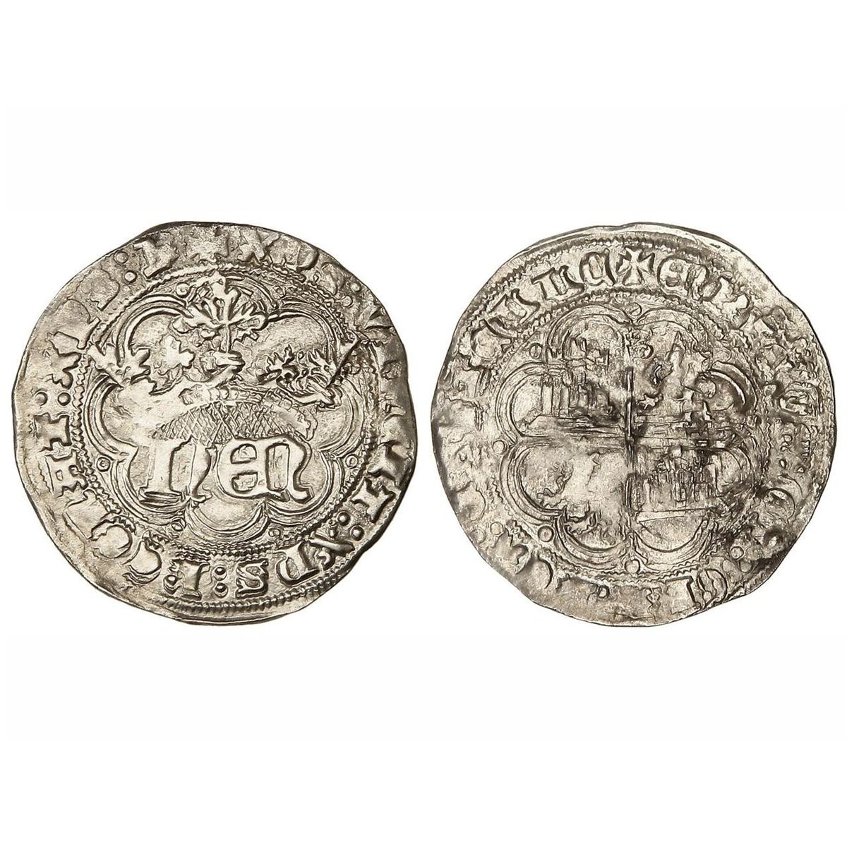 Real. - ENRIQUE IV. - BURGOS. - Anv.: ¶XPS:VINCIT:XPS:REGNAT:XPS:I. HEN coronadas. Rev.: ¶ENRICVS:DEI:GRA:REX:CASTEL. Castillos y leones cuartelados, encima B. (Repintada en reverso. Limpiada). FAB-708.1. MBC+/MBC. - -
