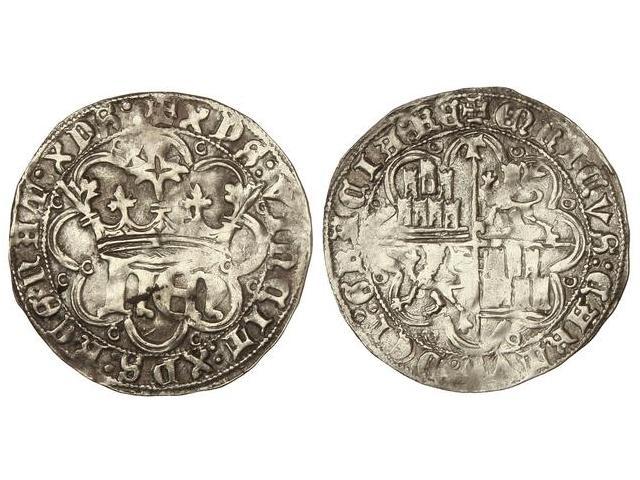 Real. ENRIQUE IV. TOLEDO. Anv.: ¶XPS:VINCIT:XPS:REGNAT:NPS:. HEN coronadas. Rev.: ¶ENRICVS:CARTVS:DEI:GRACIA:RE. T sobre el extremo superior del eje vertical. (Rayitas). FAB-714.1. MBC.
