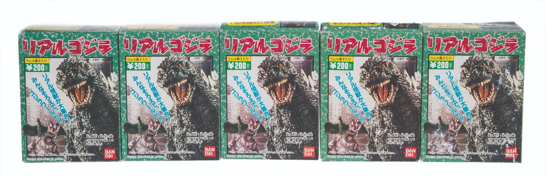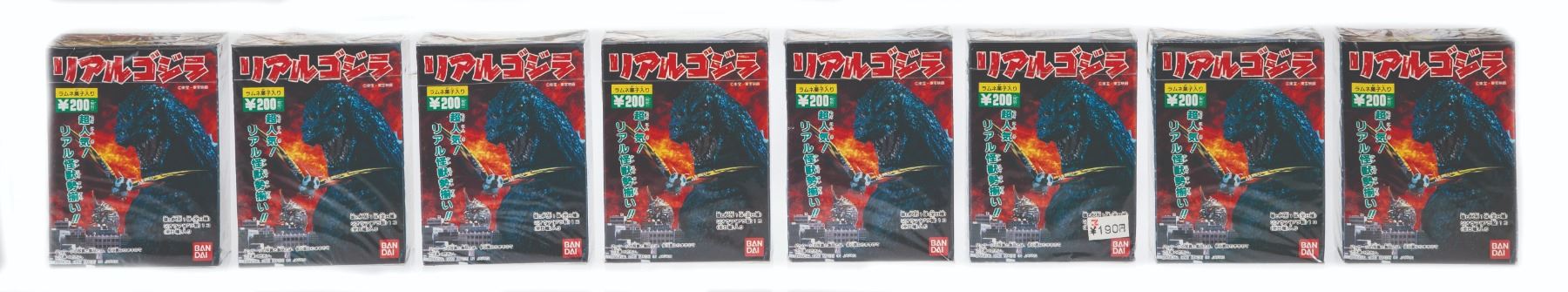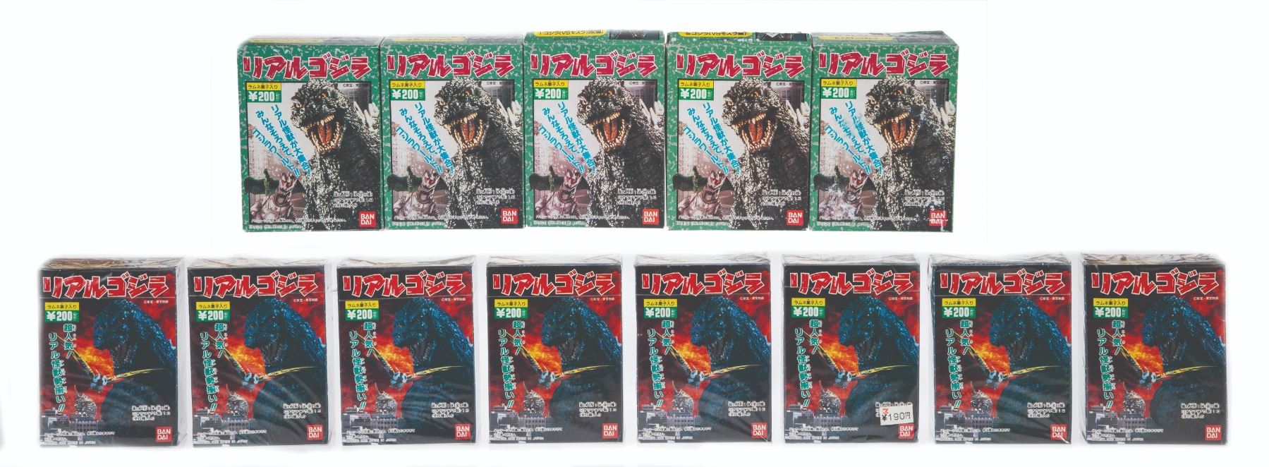 1992/1993. Bandai Real Godzilla 1 Boxed Vinyl Figure/Base Set of 8/Bandai Real Godzilla 2, 5 Figure Lot & 1Duplicate Godzilla 1992. 2. 5”. VG+.