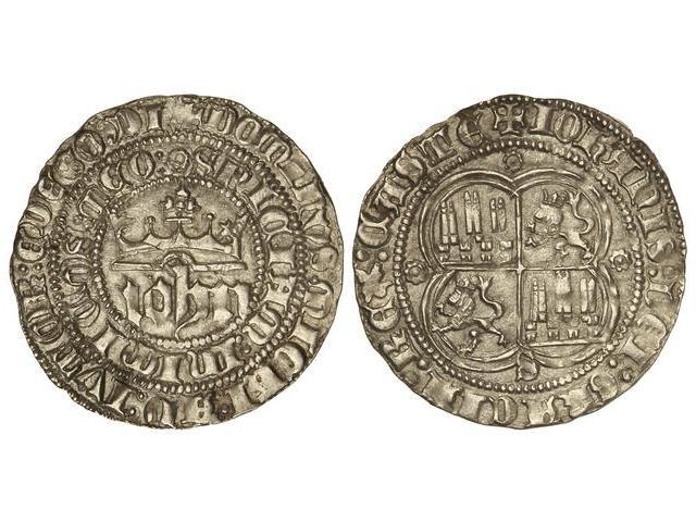 Real. - JUAN I. - SEVILLA. - Anv.: ¶DOMINVS:MICHI:ADIVTOR:EDEGO DI/SPICIAM:INIMICOS:MEO:. IOHN coronadas. Rev.: ¶IOHANIS:DEI:GRACIA:REX:CASTE. Castillos y leones cuartelados, debajo S. FAB-539 sim. EBC-. - -
