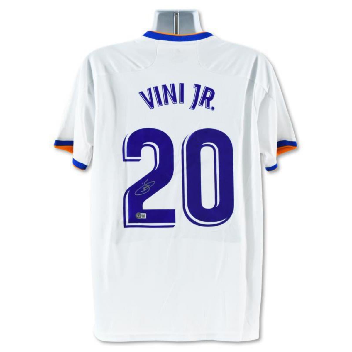 This is a replica Real Madrid soccer jersey autographed by Vini Jr. This piece is presented with a Certificate of Authenticity from Beckett with a QR code and certification number. Measures approx. 30" x 28" (jersey). Reference #: 254105