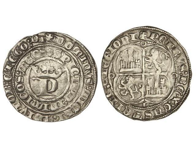 Real. PEDRO I. BURGOS. Anv.: ¶DOMINUS:MICHI:ADIVTOR:ET:EGO:DISPICIAM:INIMICOS:MEOS. P coronada. Rev.: ¶PETRUS:REX:CASTELLE:E:LEGIONIS. Castillos y leones cuartelados debajo B. 3,44 grs. FAB-378. MBC+.