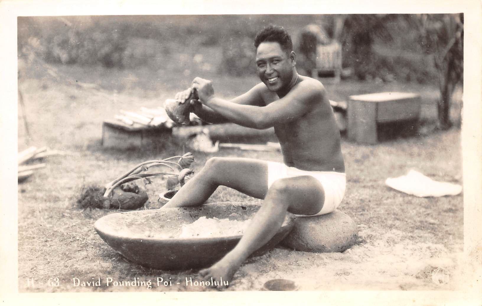 Real Photo David Pounding Poi - Honolulu, Hawaii Postcard