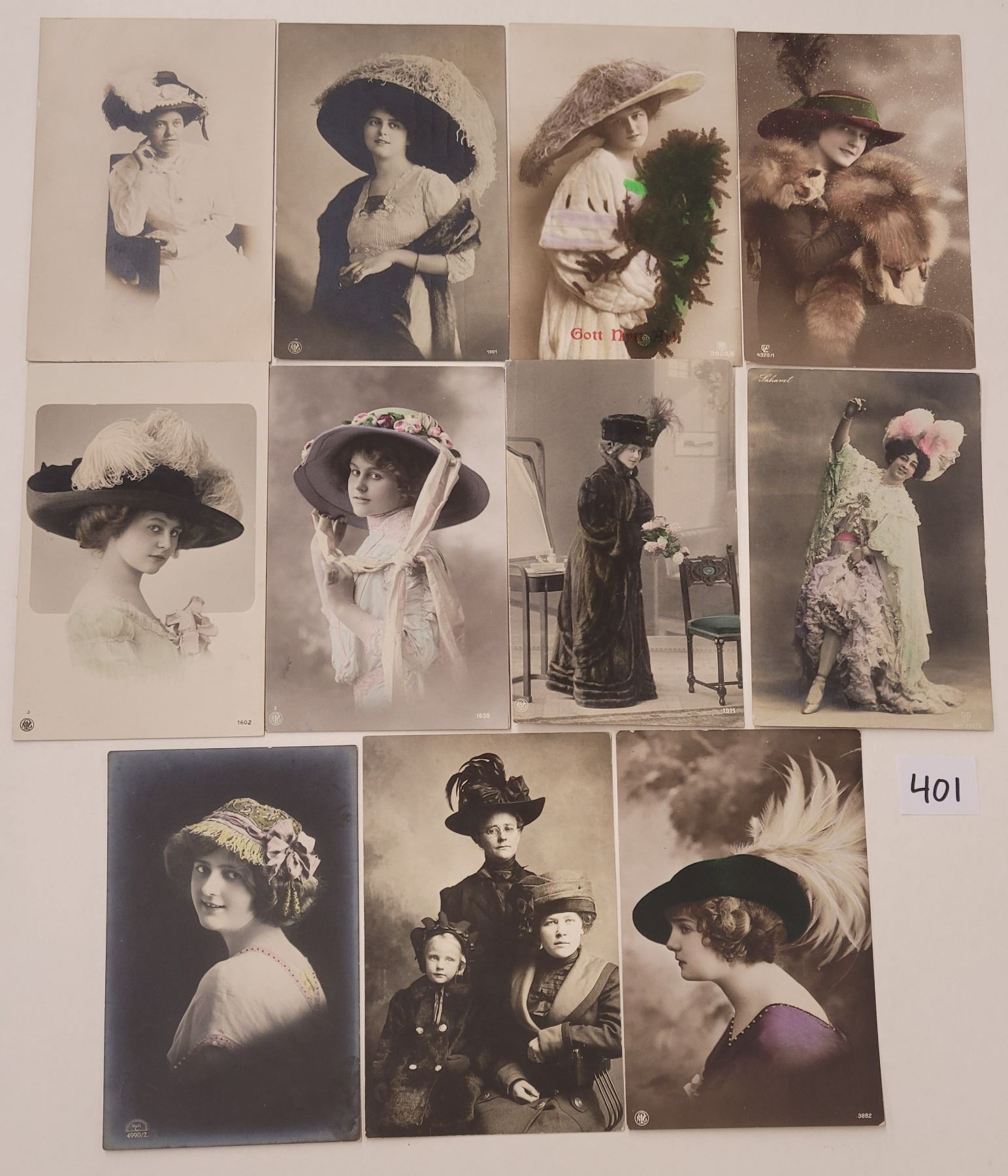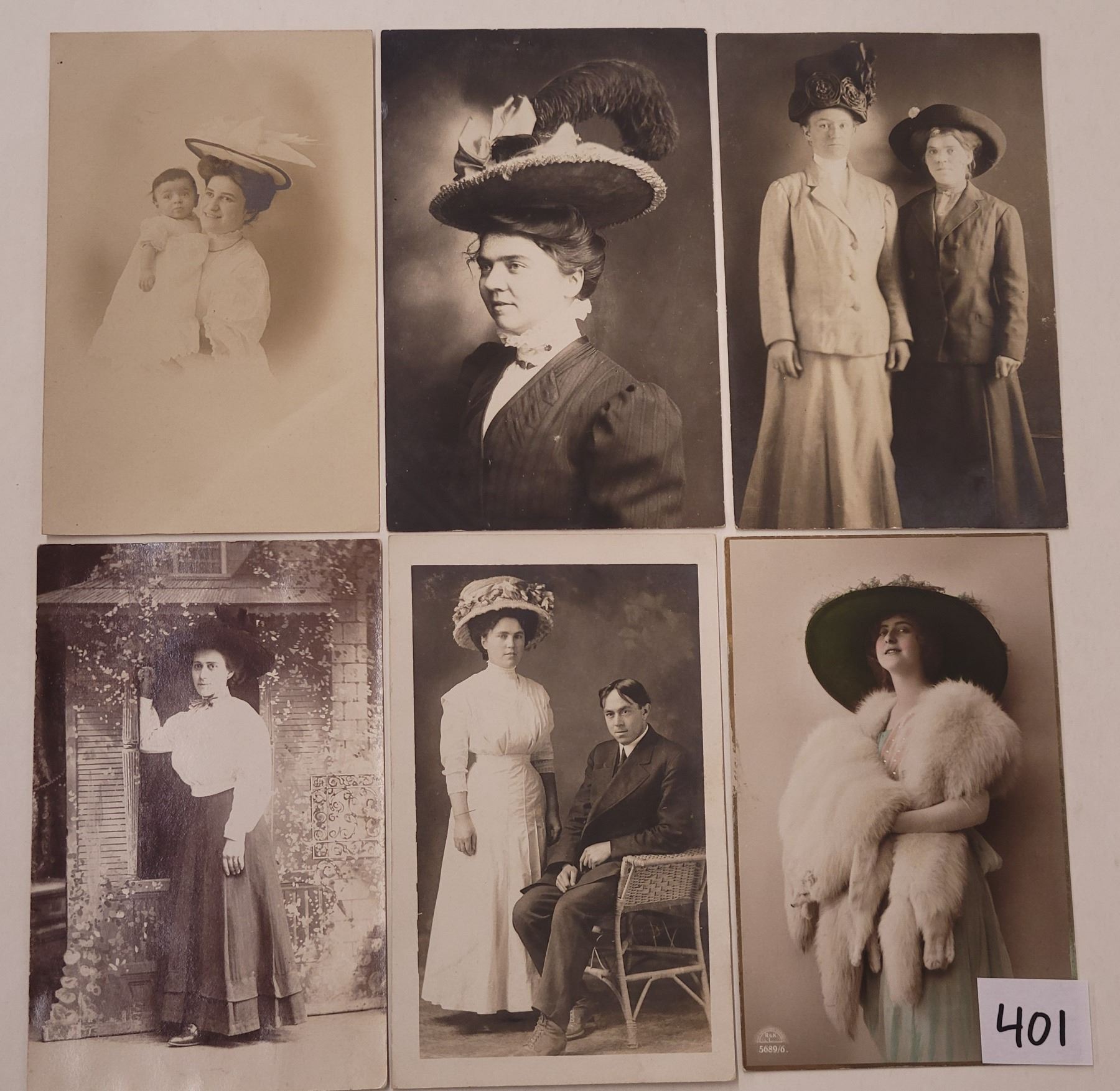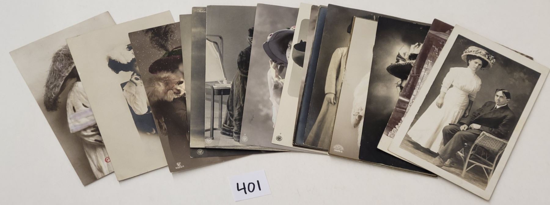 17 photo women with hats postcards.