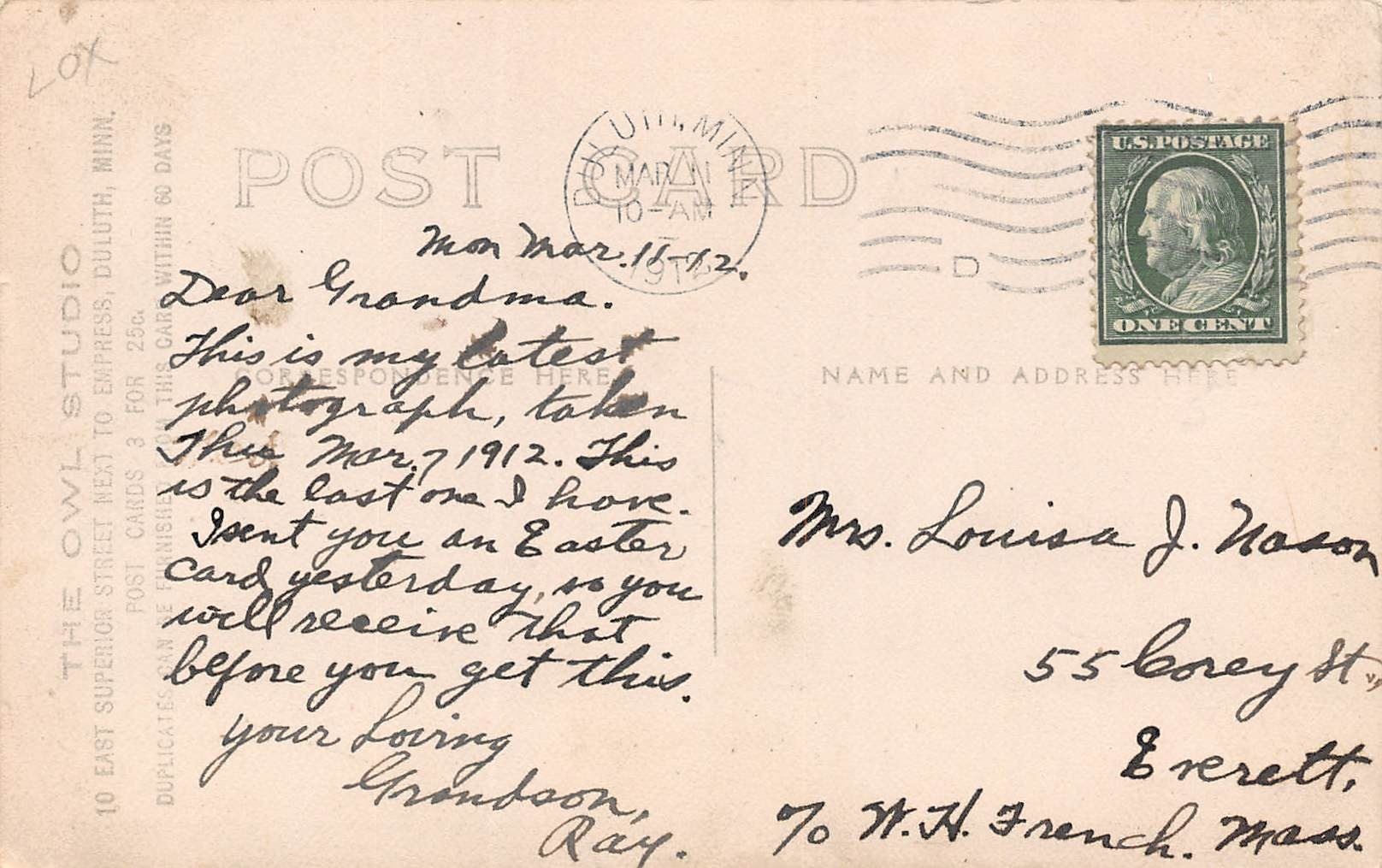Real Photo Substitute Carrier #2 Duluth, Minnesota Postcard