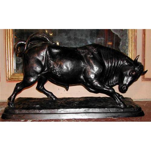 This Realistic Bronze Bull is in Excellent Condition with Foundry Marks,c1900. An Incredible Rendition of a Bull ready for Play or Fighting with Marvelous Patina, Measuring 23" wide x 13" tall. The Sculpture has Foundry Marks and is numbered, please view all pictures to enjoy, serious inquiries are welcome!