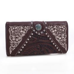 Realtree(R) Tooled Leather Tri-fold Wallet with Turquoise Concho