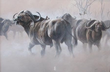 "Rear Guard Cape Buffalo" by Andrew Ellis Acylic on Board 33"x48"