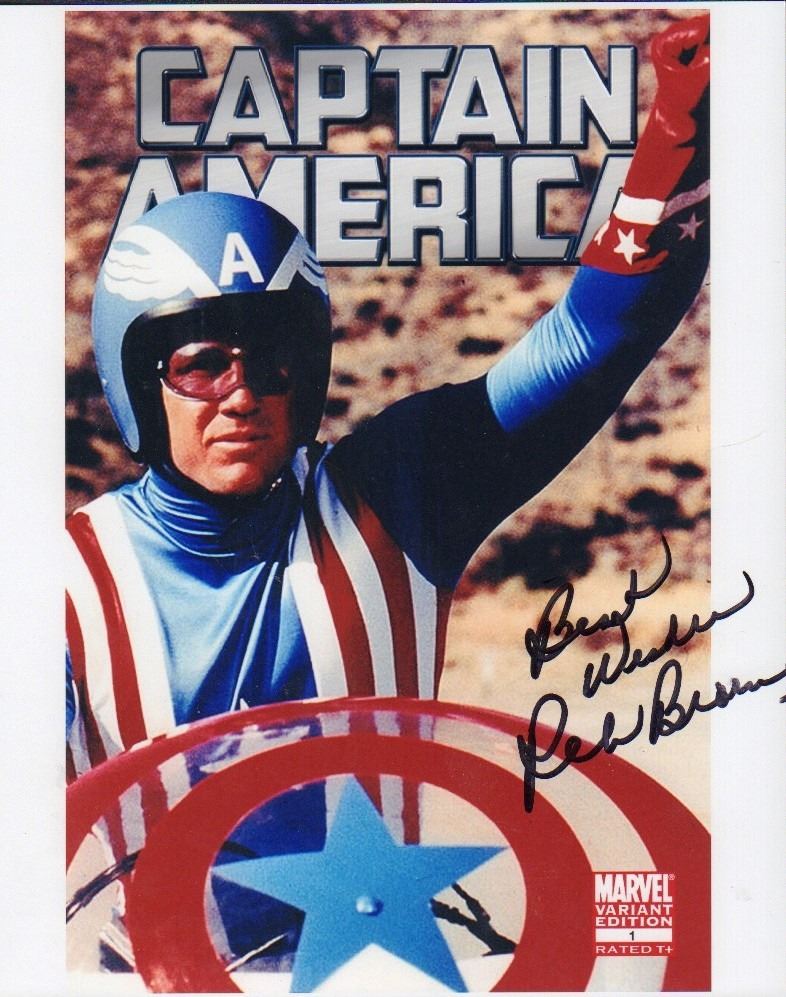 A 8x10 photo signed by Reb Brown as Captain America with COA.