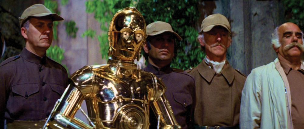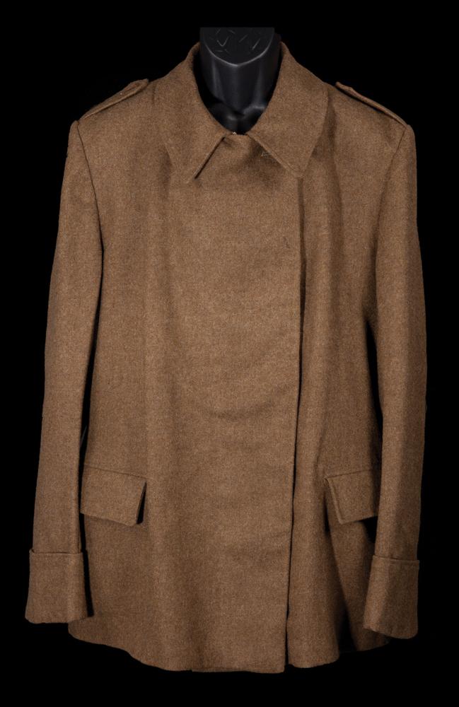 (TCF, 1977) Jacket worn by Princess Leia’s guards during the final scenes of the film, when Han, Luke and Chewbacca are awarded the Alderaanian medal of freedom at the Massassi temple on Yavin IV. Internal “M. Berman Ltd” label handwritten “42L 1.” Obtained from Cameo Auction “The Angels Film Costume Auction,” May 23, 2010.