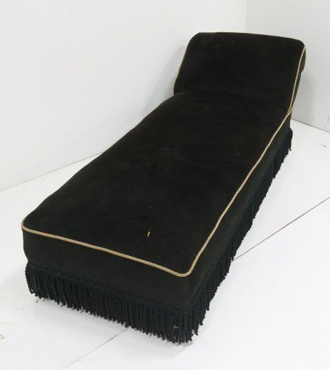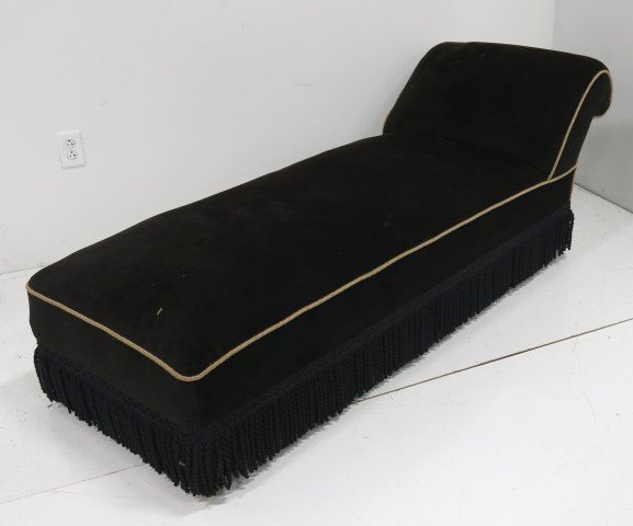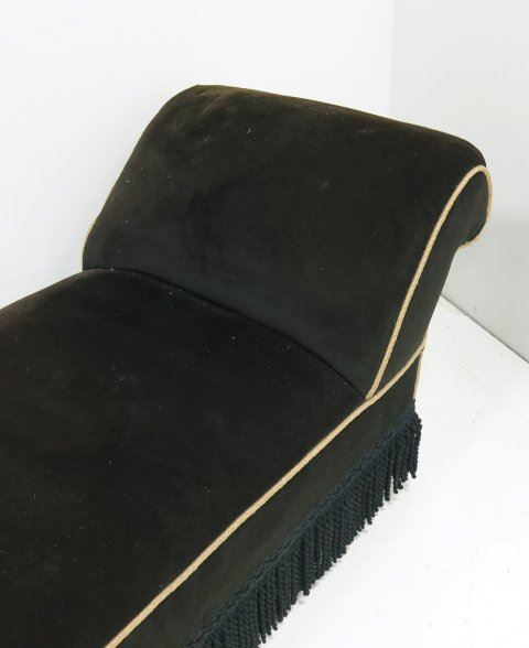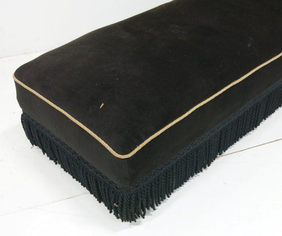 Velvet coffee fabric, upholstery good, tassel bottom. Approx. 25" H x 24" x 72".