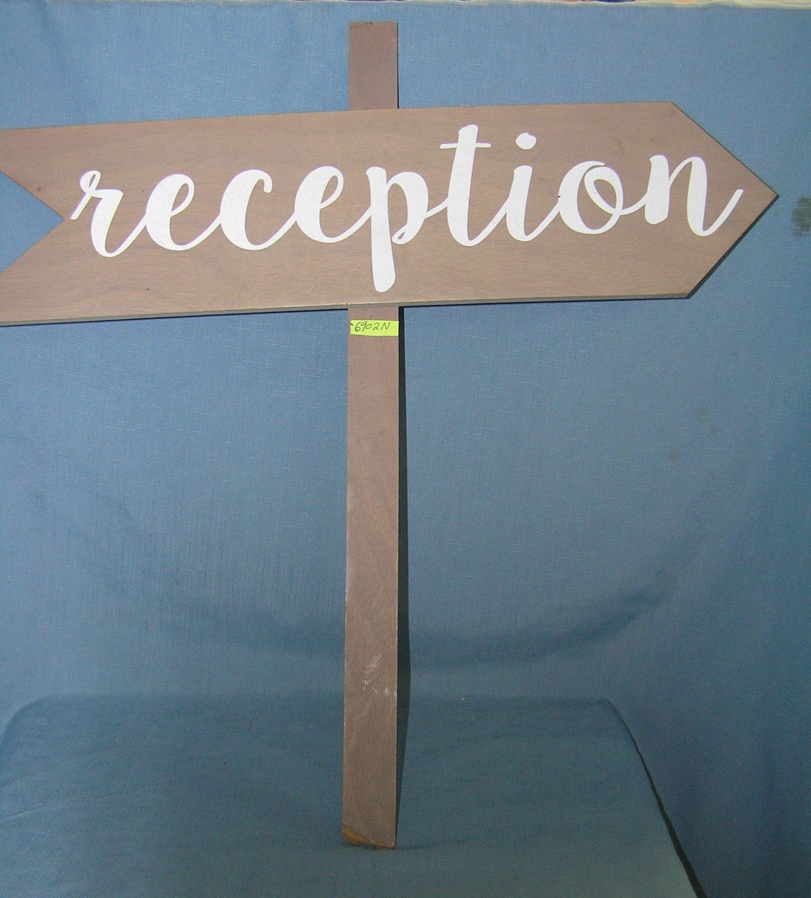 Reception stick in the ground arrow sign on masonite est. value $30.00-$45.00