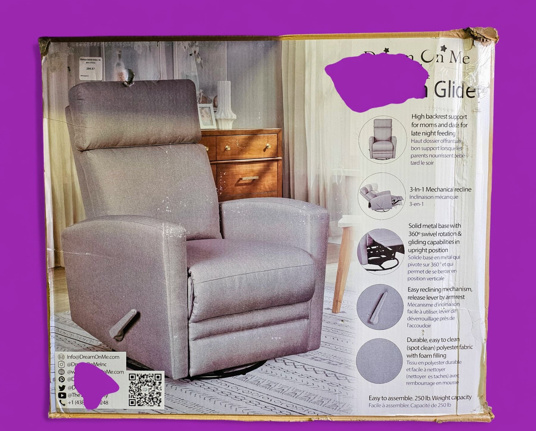 Dream on Me Chatham Glider upright reclining lazy boy style chair.