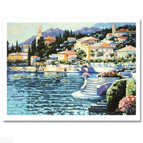 BRING LIGHT AND LIFE TO ANY ROOM WITH THE WORK OF HOWARD BEHRENS! With bright colors and lush textures, Howard Behrens' artwork adds a tropical and exotic feel to any art collection. "Recollections of Lake Como" is a limited edition hand-embellished giclee on canvas, numbered and bears Behrens' authorized signature. Includes Certificate of Authenticity! Measures approx. 42" x 30" (image).