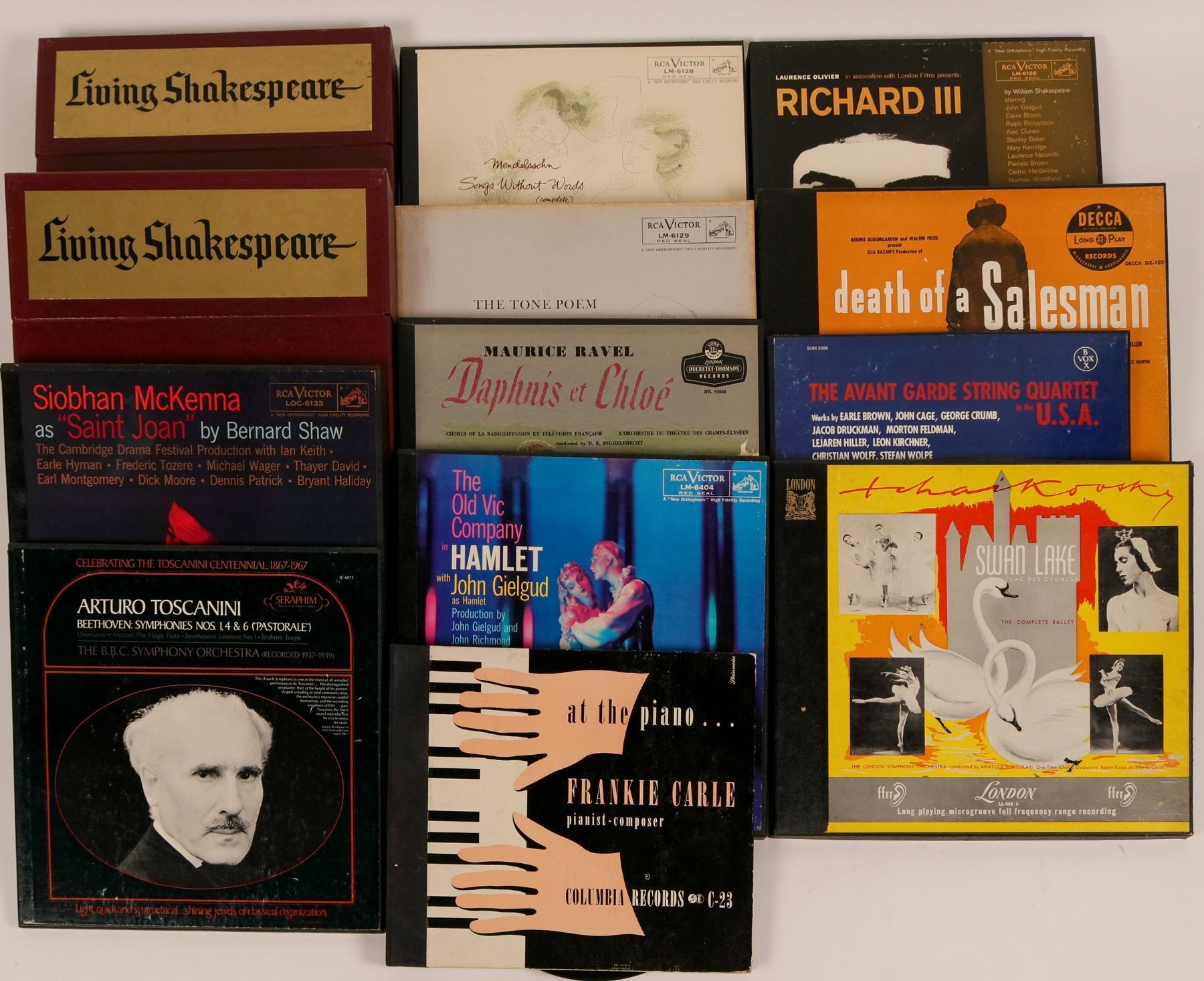 Boxed set collection with everything from spoken word, Olivier doing Richard III, to Mendelssohn. Twelve of these are in the more modern 33 rpm, with one being in the older 78 rpm mode.