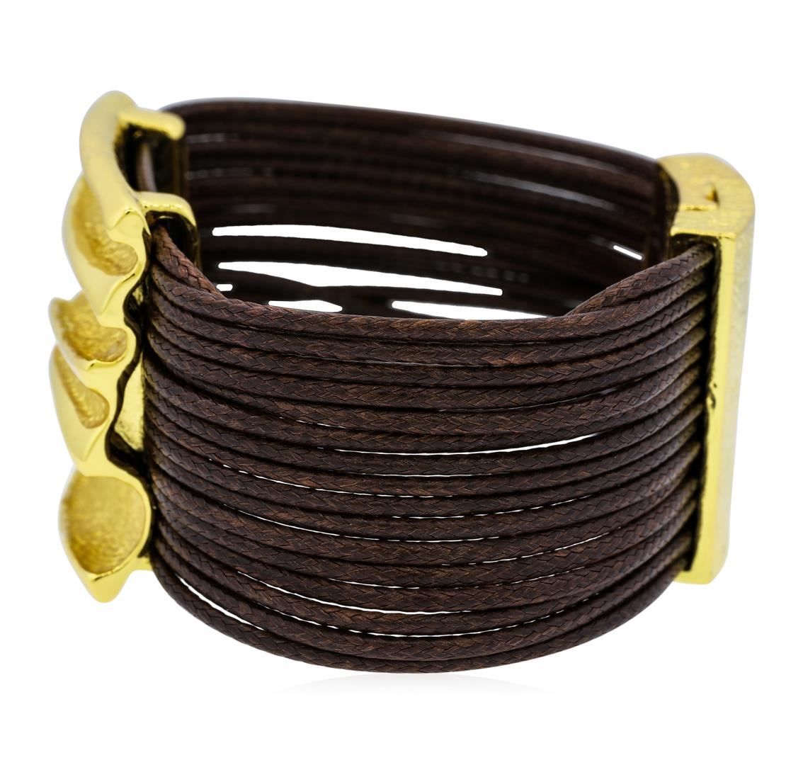 High end designer jewelry. Rectangle Pendant Multi Strand Bracelet - Gold Plated. Gold Plated/ Mag Clasp. Gold/ Brown. 7.5inches. Total Weight: 49.7 grams.