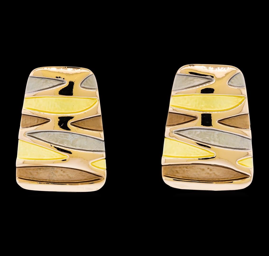High end designer jewelry. Rectangle Post Earrings - Rose Gold Plated. Rose Gld Plated/ Stud. Multi/ Rose. 1inch. Total Weight: 6.3 grams.