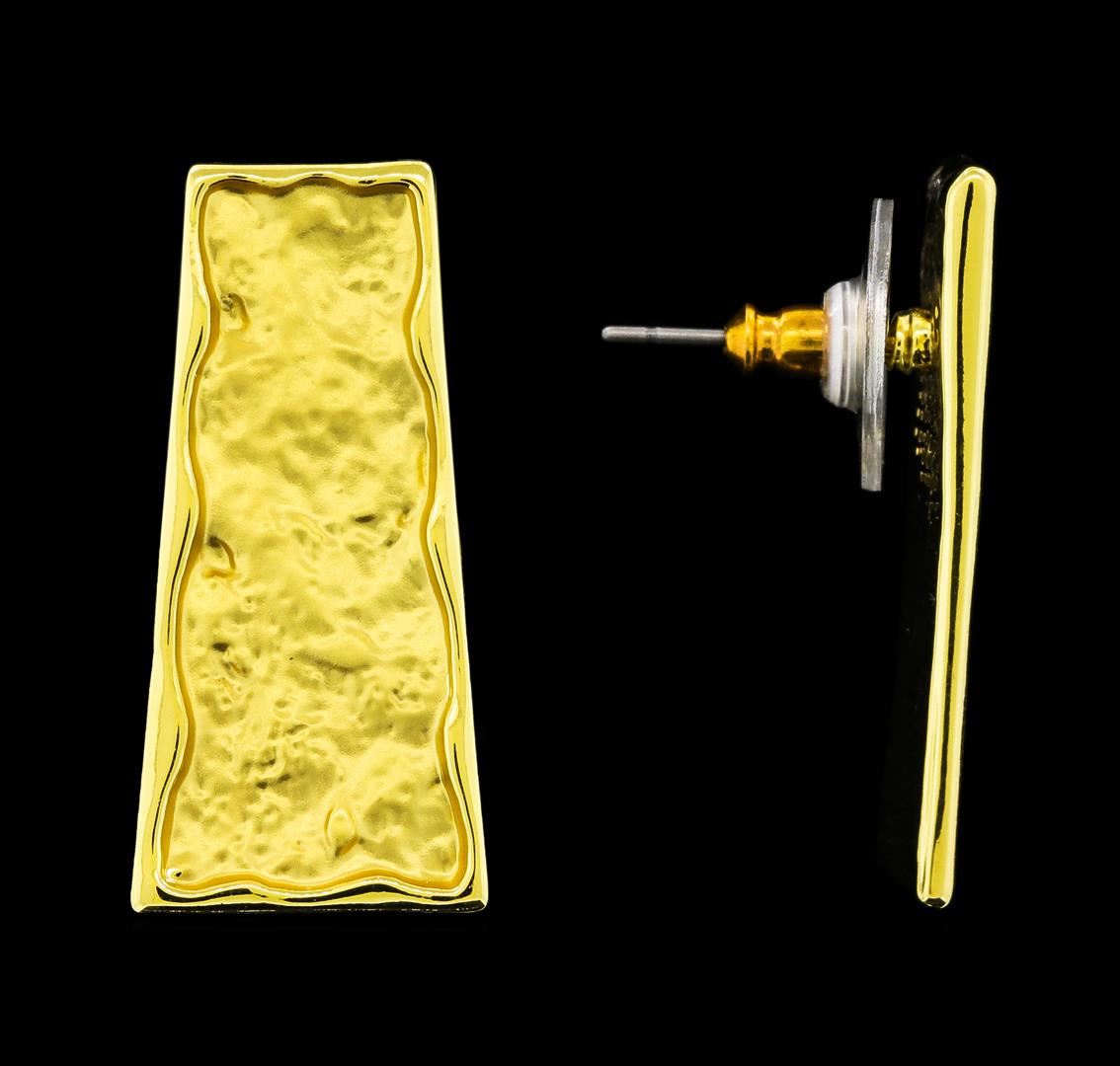 High end designer jewelry. Rectangular Bar Earrings - Gold Plated. 18 K Gold Plated Matte Metal. Gold. Stud.